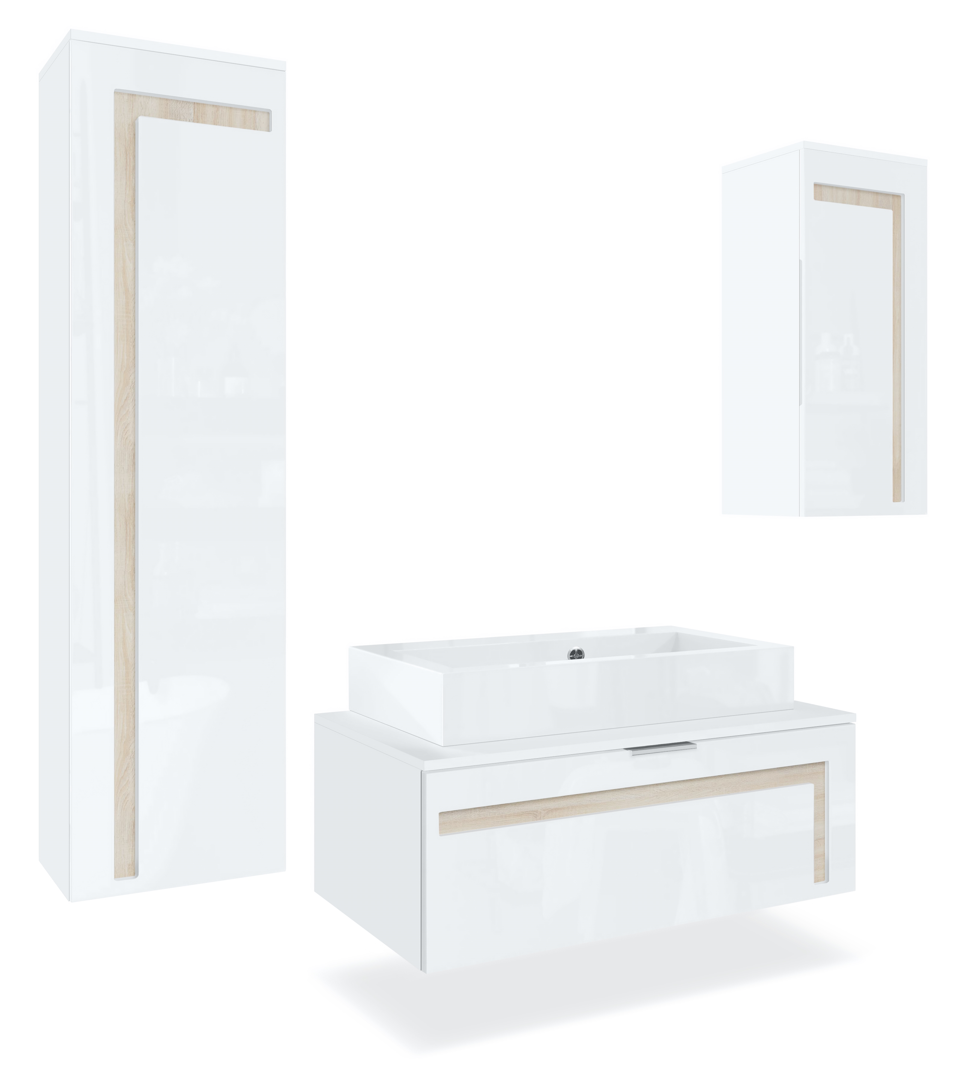 Produktinformationen "Badmöbel-Set Aloha V2 1 Unterschrank und 1 Waschbecken Weiß matt/Weiß Hochglanz, Absetzungen in Eiche sägerau (189x193x51cm)"