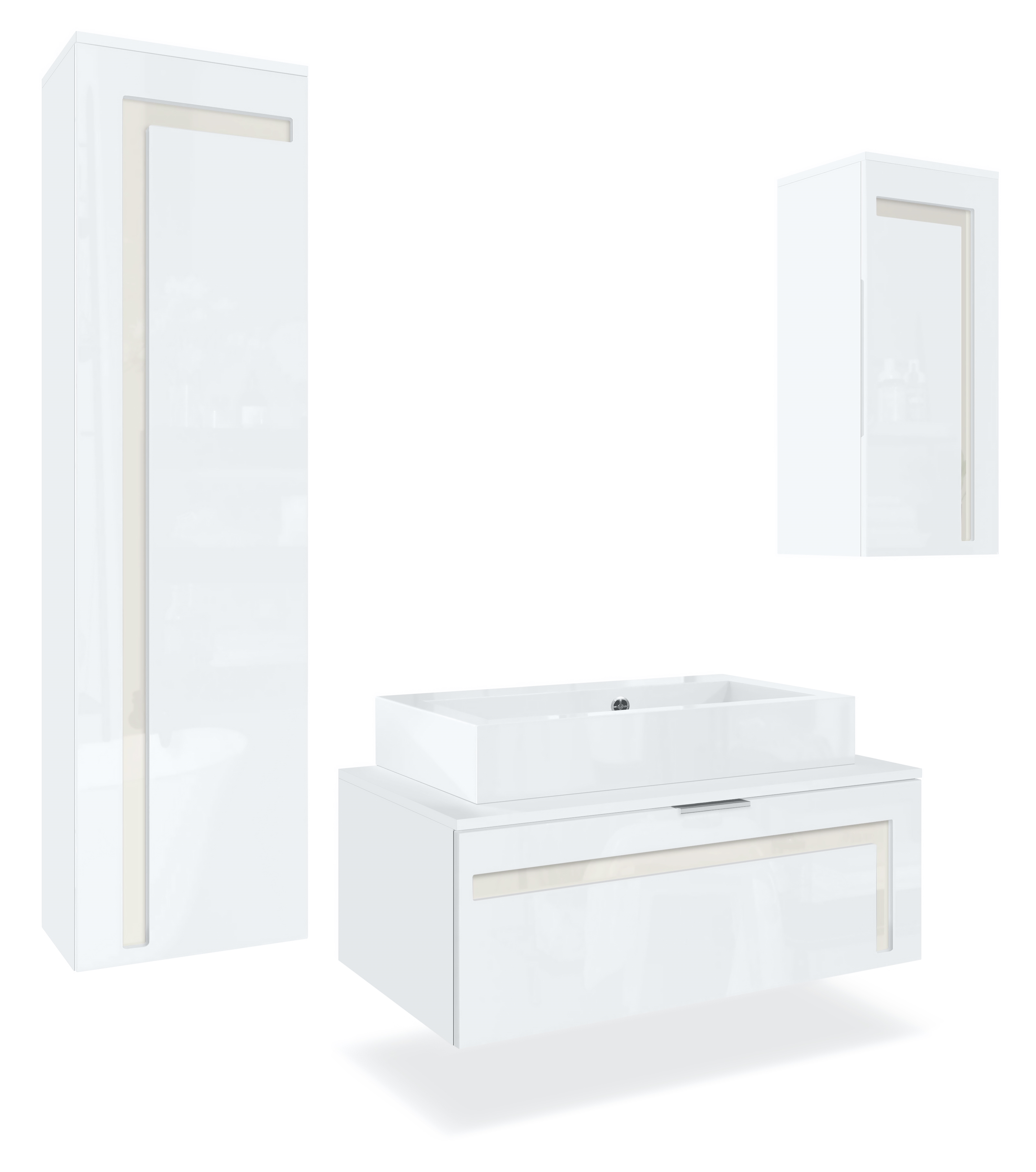 Produktinformationen "Badmöbel-Set Aloha V2 1 Unterschrank und 1 Waschbecken Weiß matt/Weiß glänzend, Absetzungen in Creme glänzend (189x193x51cm)"