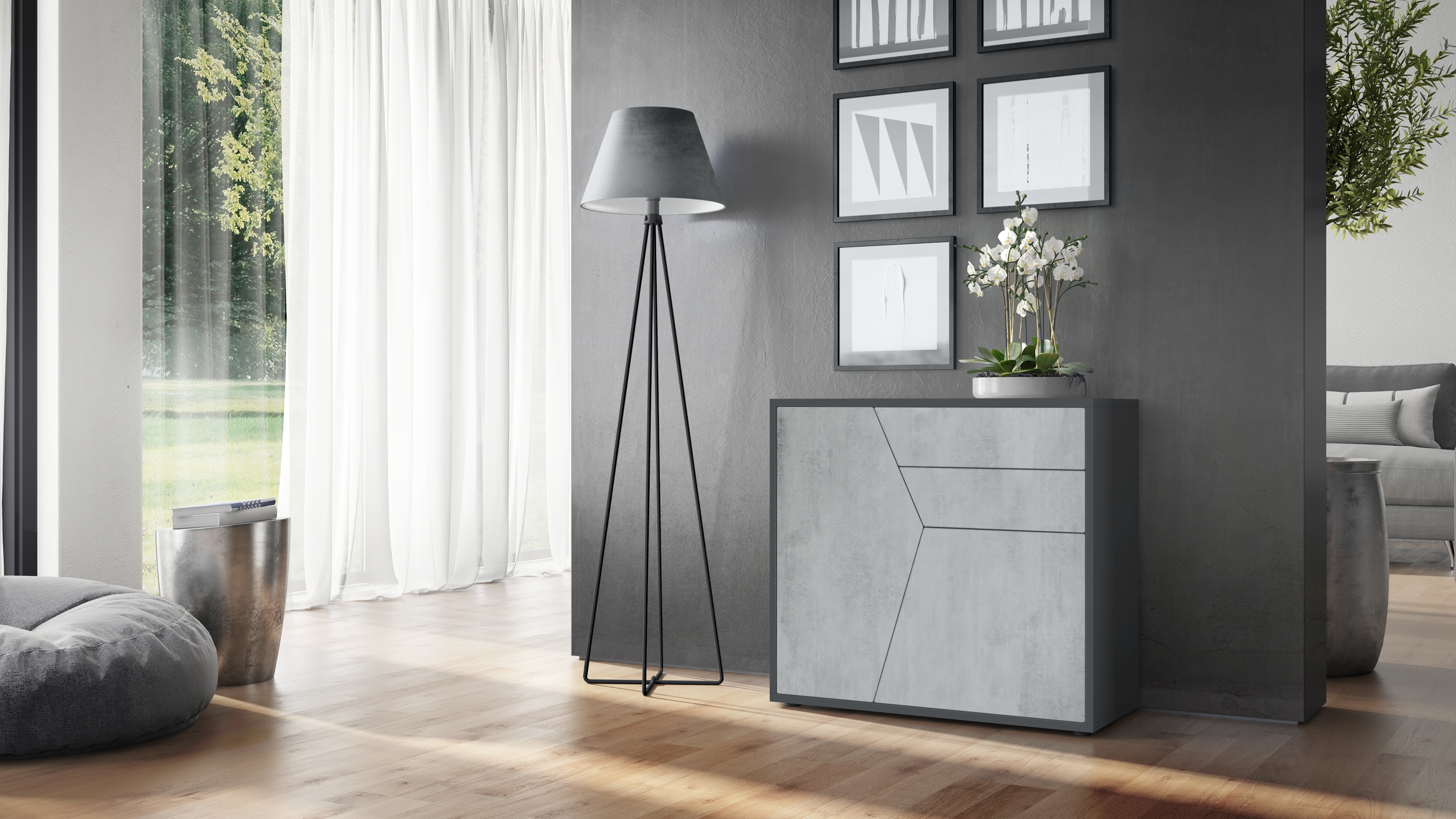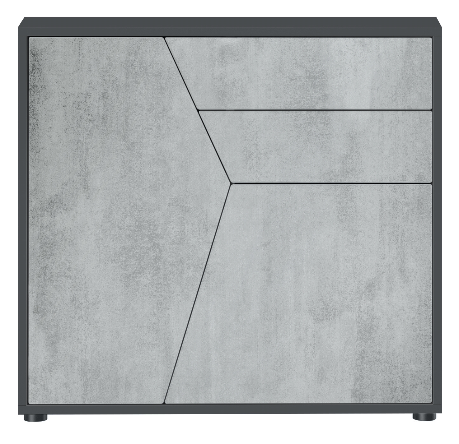 Produktinformationen "Benny Kommode mit 2 Türen und 2 Schubladen Schwarz matt/Beton Oxid Optik (79 x 74 x 36 cm)"