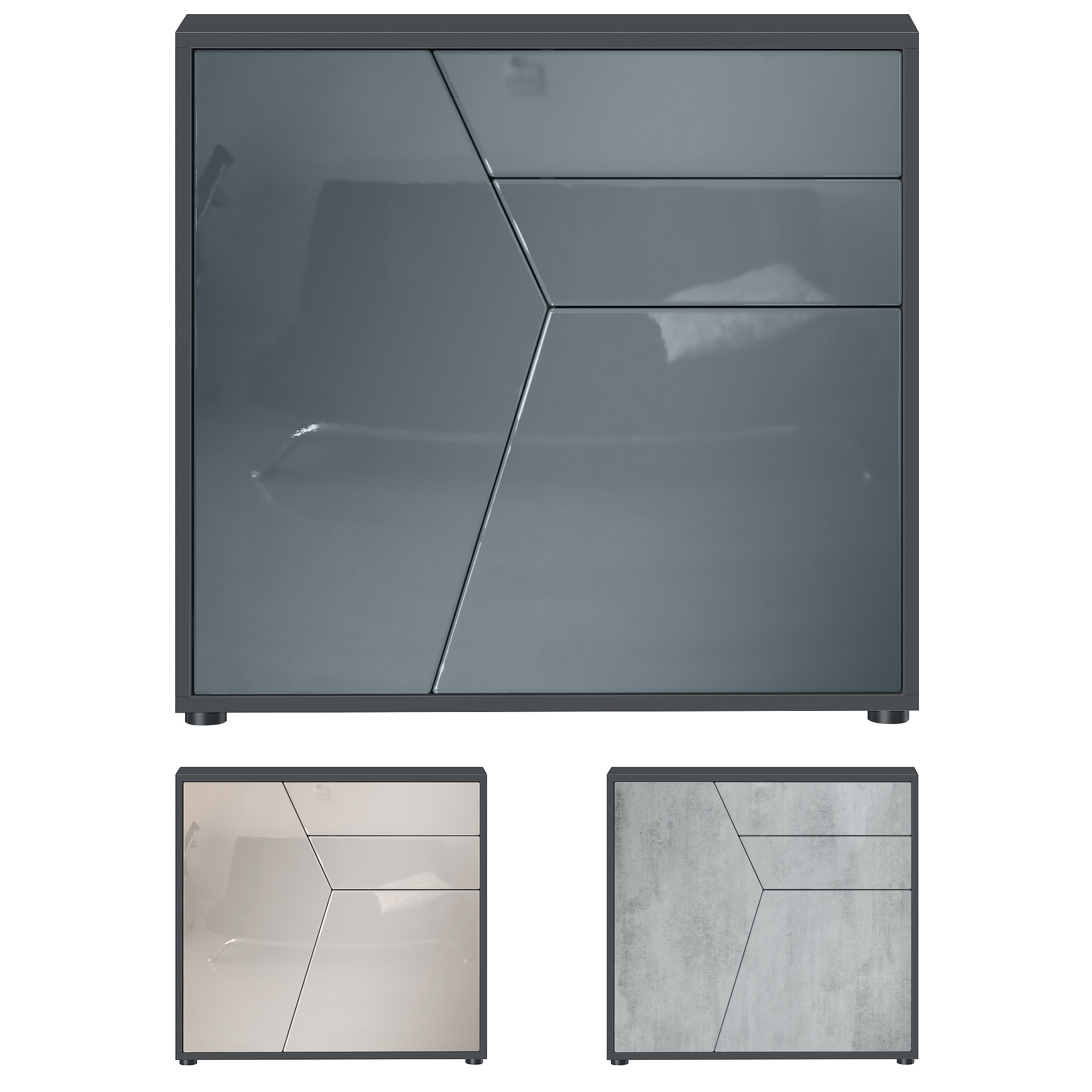 Durch das schlichte, moderne Design lässt sich die Kommode mit vielen verschiedenen Einrichtungsstilen kombinieren und sowohl als Wohnzimmerschrank, Kommode im Schlafzimmer oder als TV-Sideboard einsetzen. Für eine besondere Eleganz sorgen die Fronten der Türen- und Schubladenkommode, erhältlich in vielen verschiedenen Farbvarianten, die Ihnen eine Vielzahl an Kombinationsmöglichkeiten bieten. Durch die Oberflächenbeschichtung erhalten Sie ein besonders pflegeleichtes Produkt. Für die Reinigung können Sie auf Chemie verzichten - es reicht ein leicht angefeuchtetes Tuch, um die wasserfeste Oberfläche angemessen zu reinigen.