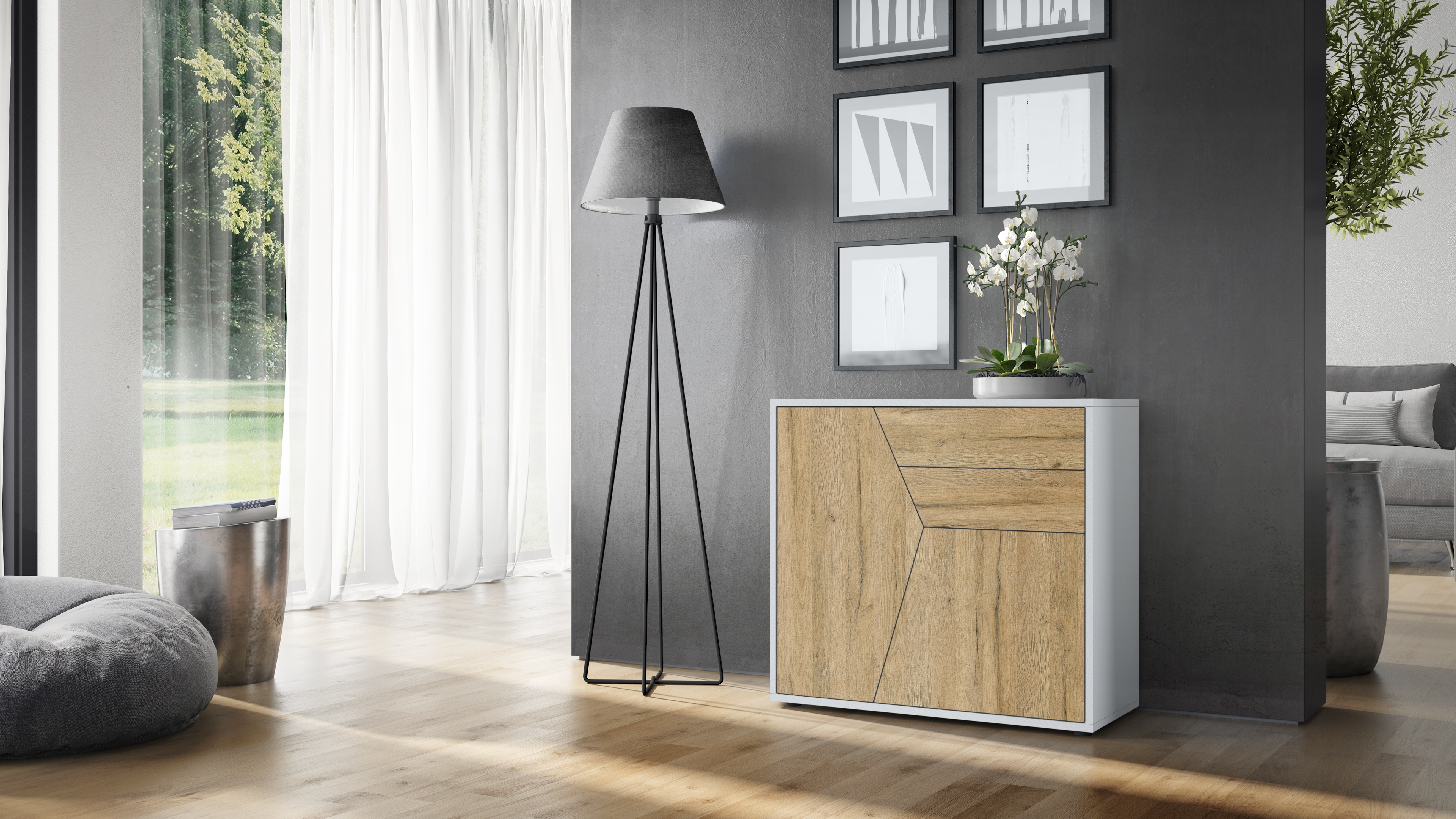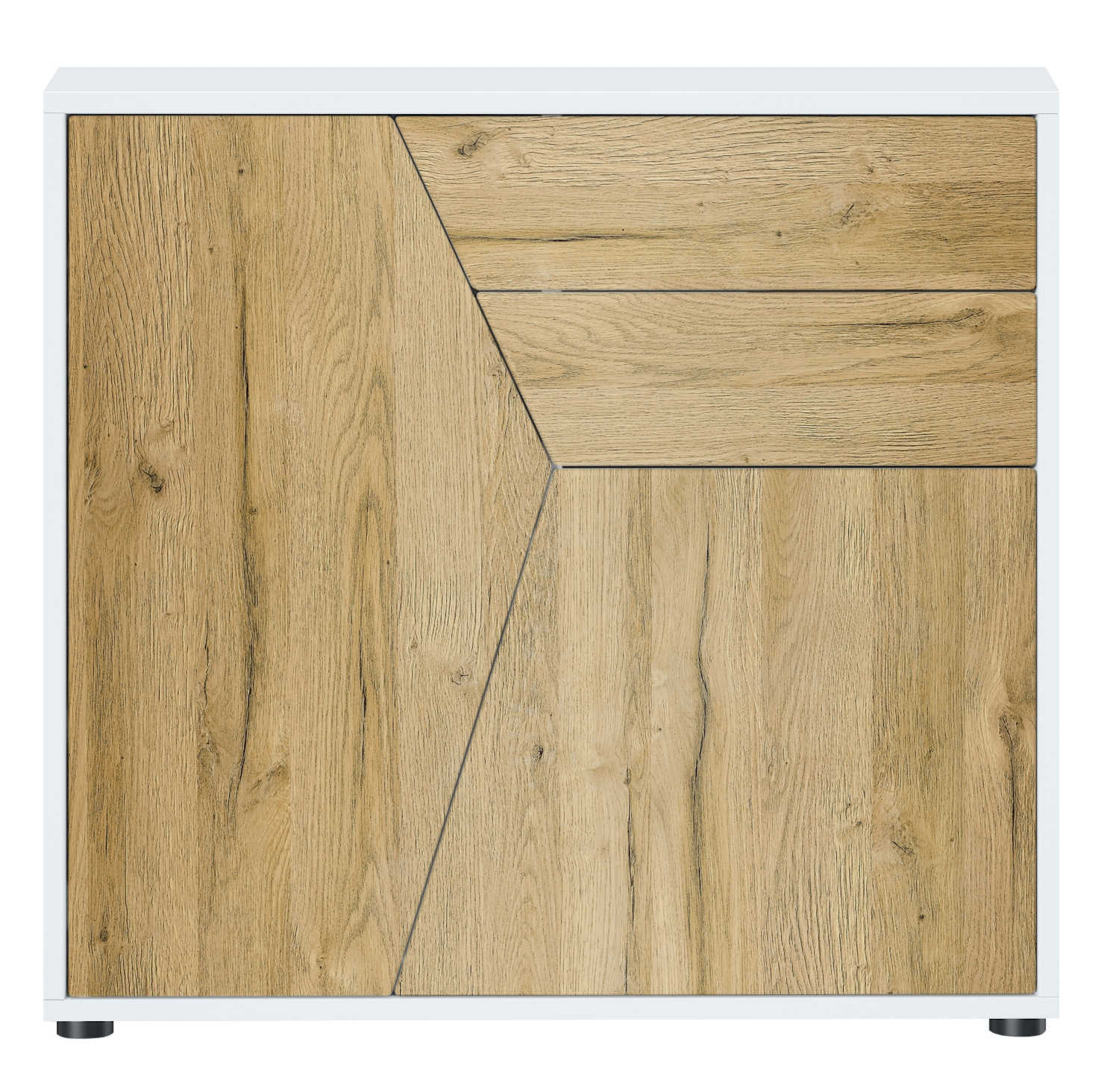 Produktinformationen "Benny Kommode mit 2 Türen und 2 Schubladen Weiß matt/Eiche Natur (79 x 74 x 36 cm)"