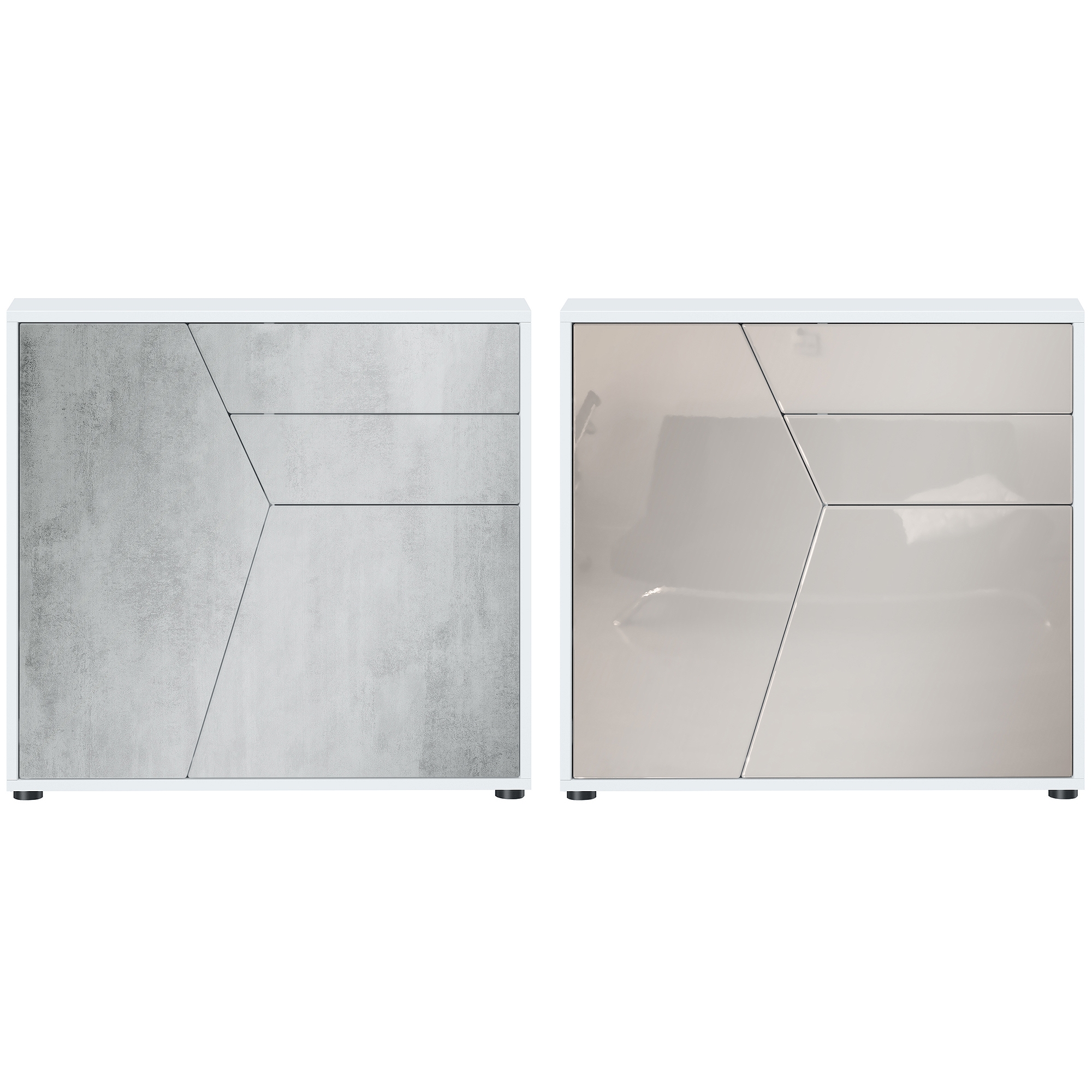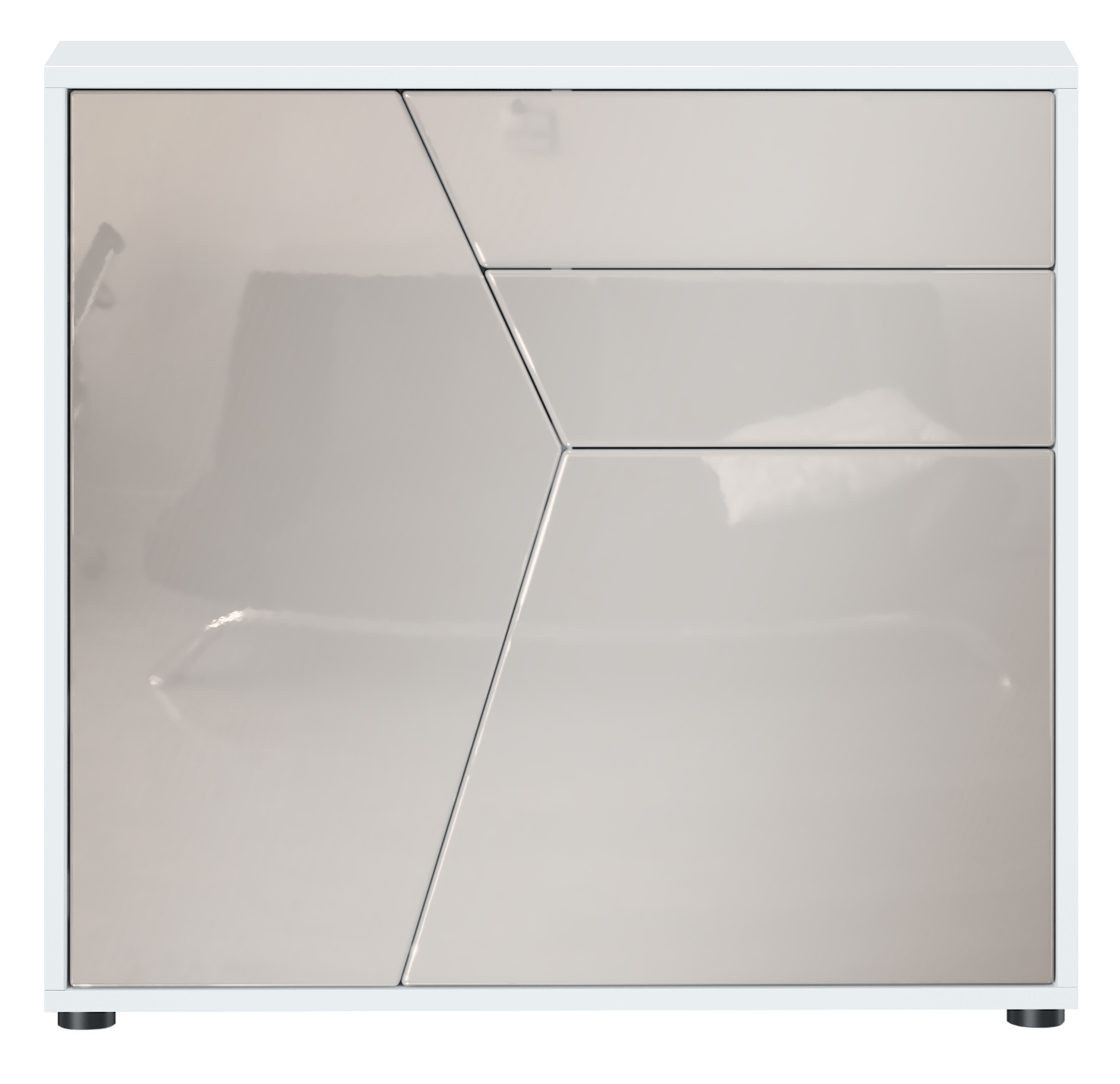 Produktinformationen "Benny Kommode mit 2 Türen und 2 Schubladen Weiß matt/Sandgrau Hochglanz (79 x 74 x 36 cm)"