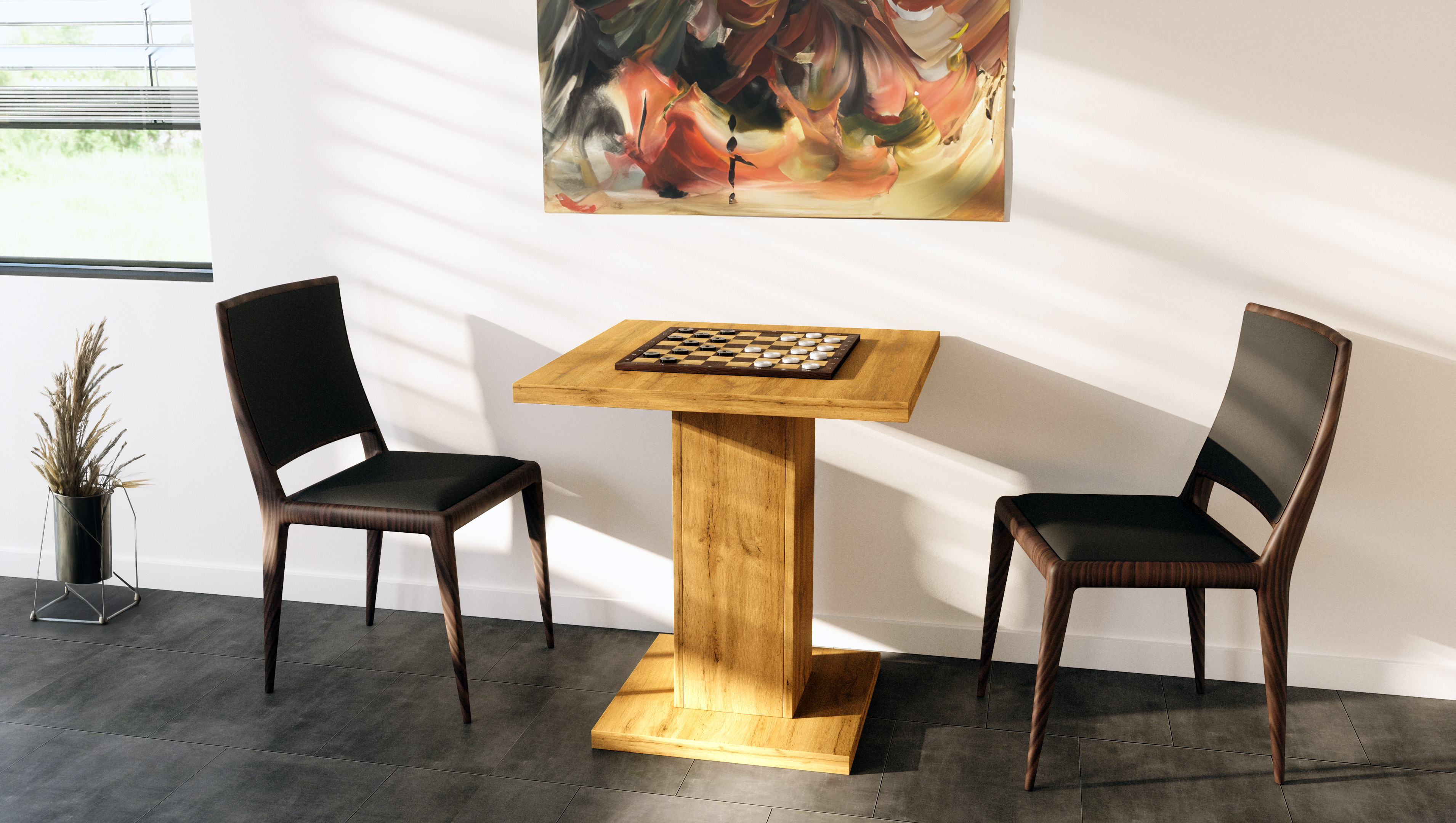 Der praktische Bistrotisch Adam bringt ein Stilvolles-Ambiente ins Wohn- oder Esszimmer. Der Tisch ist aus Spanplatte gefertigt und eignet sich ideal für kleinere Essbereiche, Cafés, Küchen oder stilvolle Besprechungszonen.