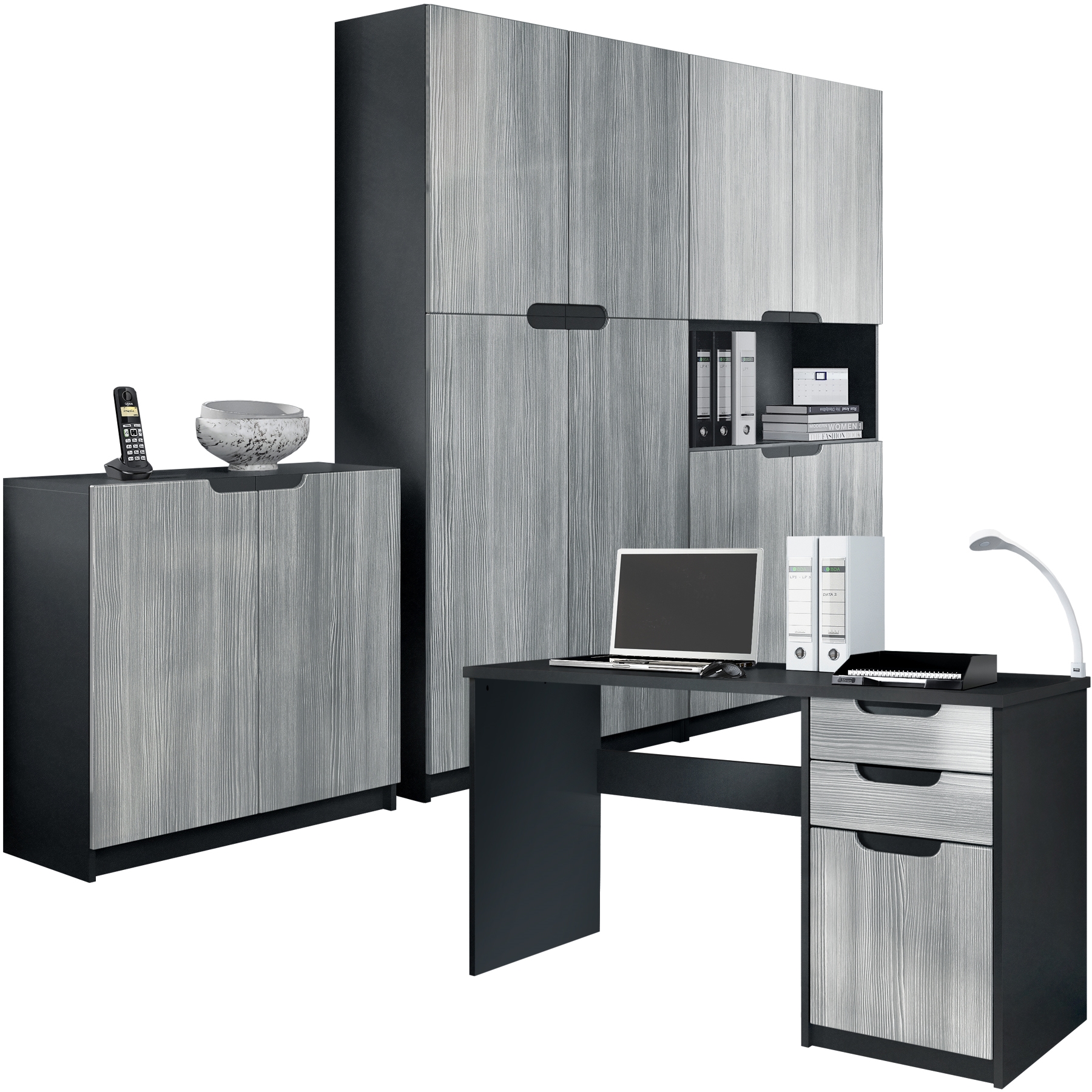 Produktinformationen "Büromöbel-Set Logan mit 1 Schreibtisch, 2 Schränken und 1 Kommode Schwarz matt/Avola-Anthrazit (246 x 60 x 185 cm)"