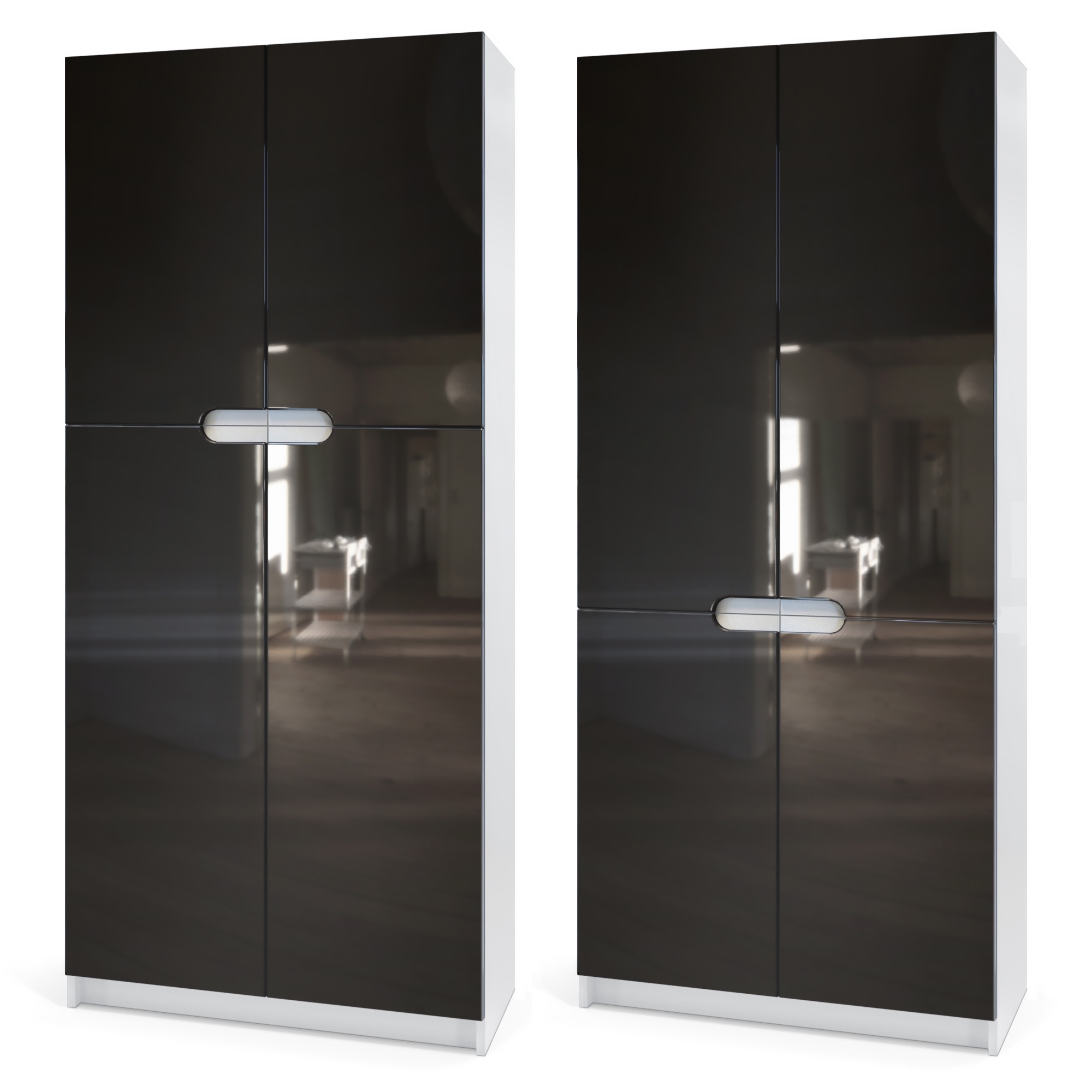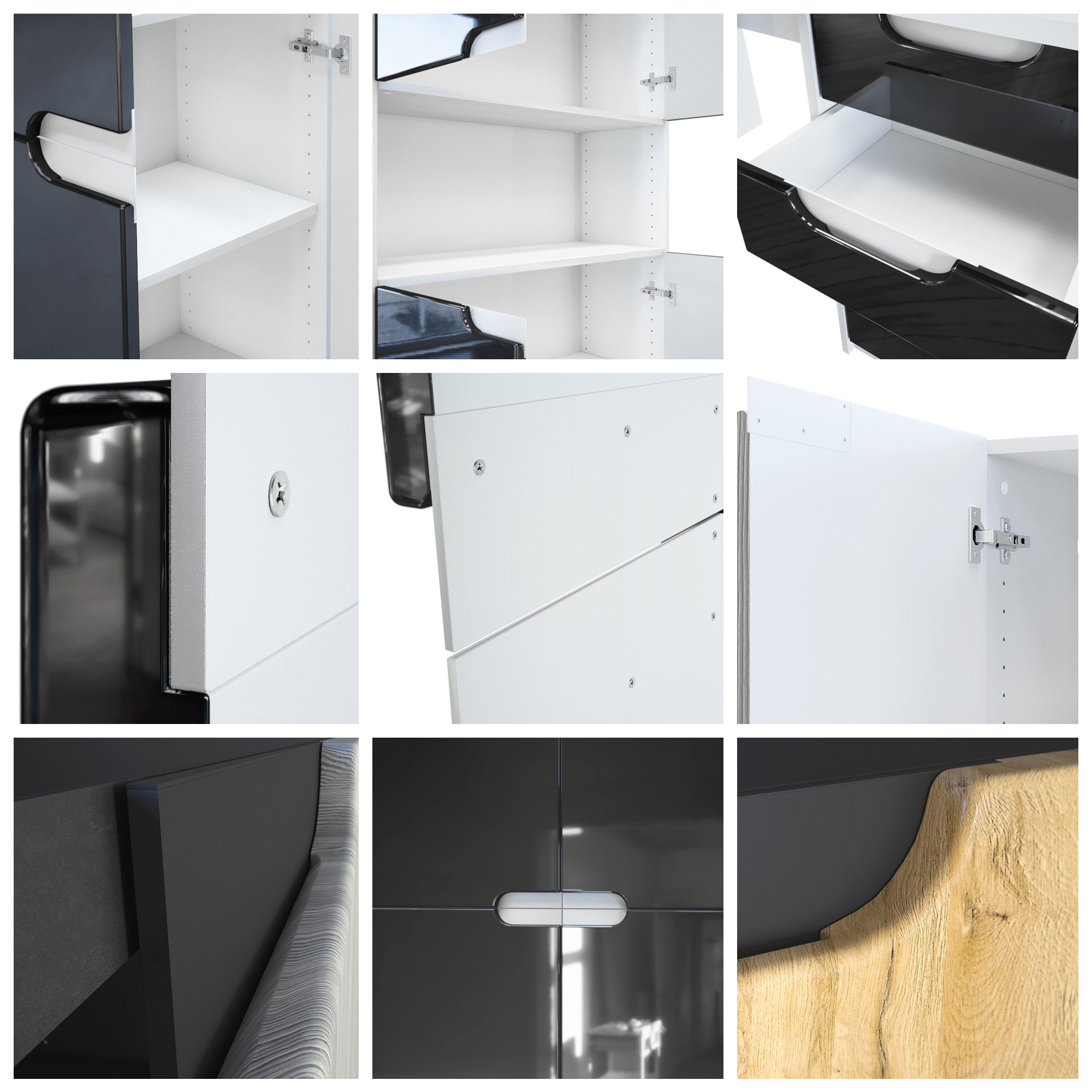 Die Türen sind mit Softclose-Scharnieren versehen, die ein leises Schließen gewährleisten. Die Möbel werden flach verpackt geliefert, und die inkludierte Kippsicherung bietet zusätzliche Stabilität. Eine bebilderte Aufbauanleitung erleichtert die Selbstmontage.