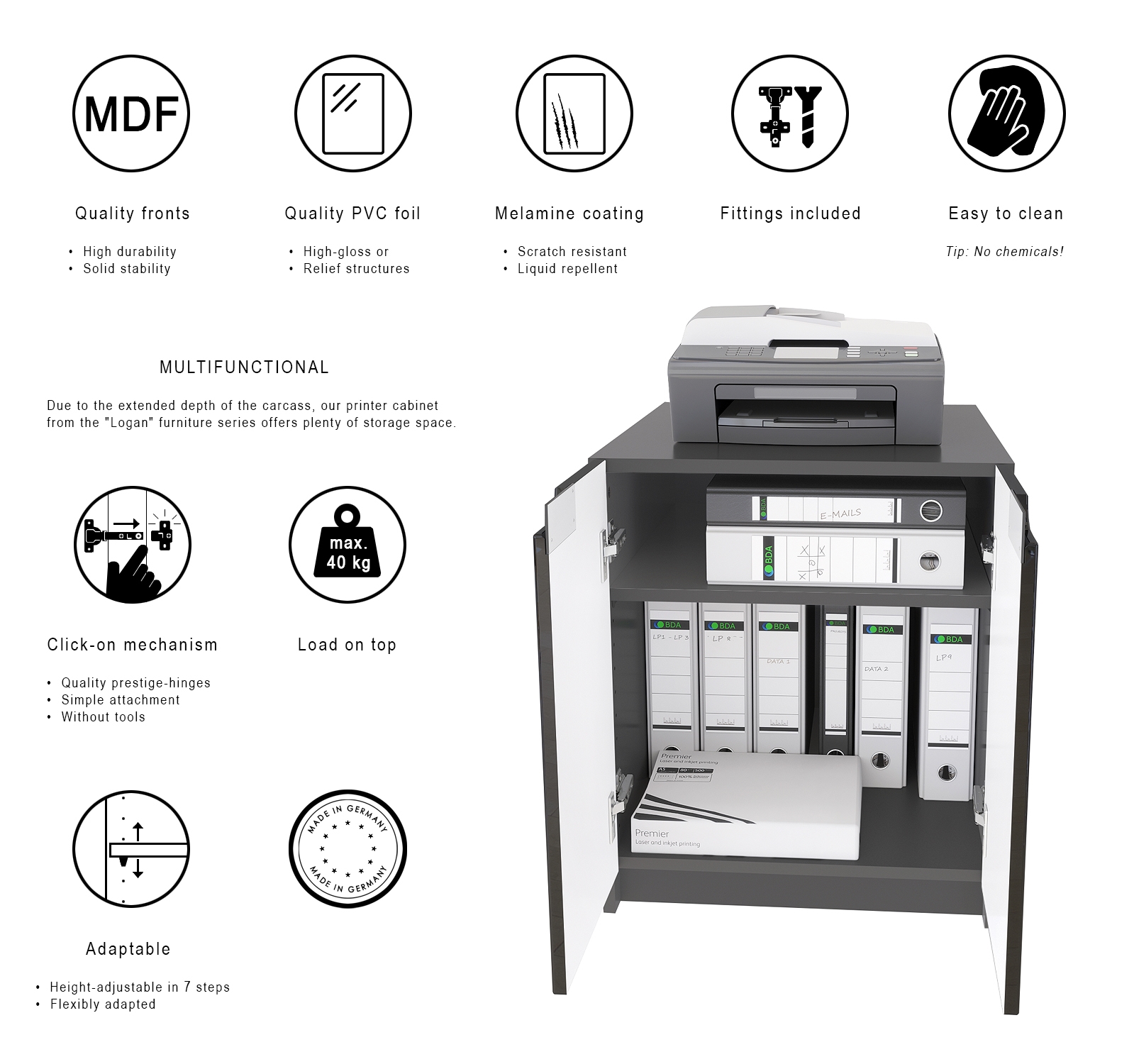 Paris ist die perfekte, funktionelle Büroserie, die sich ideal für das Home-Office oder den professionellen Einsatz eignet. Mit Paris passen Sie sich flexibel an und wachsen mit den steigenden Ansprüchen.