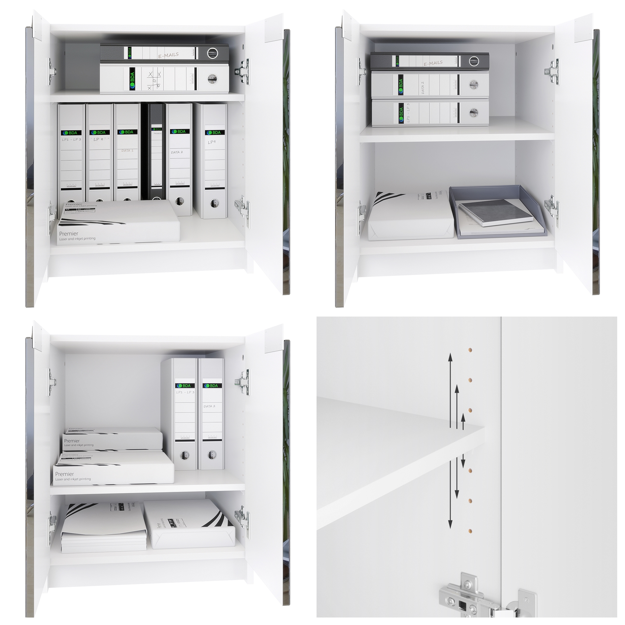 Hochwertige Designelemente wie eingelassene, optisch abgesetzte Griffmulden und flexibel wählbare Frontfarben verleihen Ihrer Büroeinrichtung Individualität und Stil.