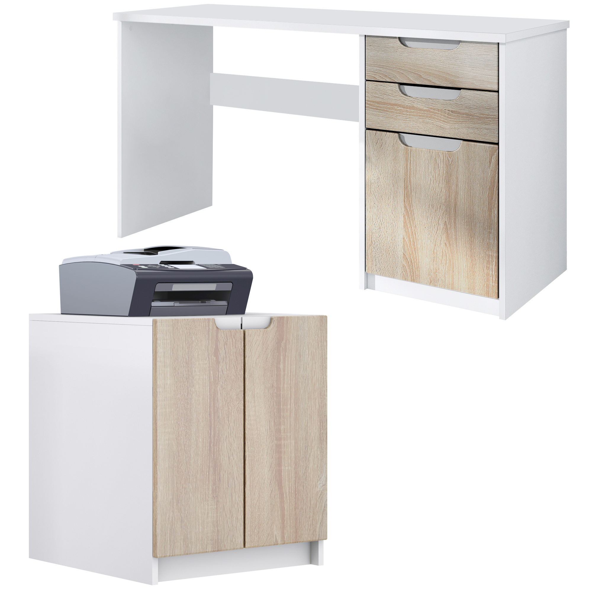 Produktinformationen "Büromöbel-Set Paris mit 1 Schreibtisch und 1 Druckerkommode Weiß matt / Eiche sägerau"