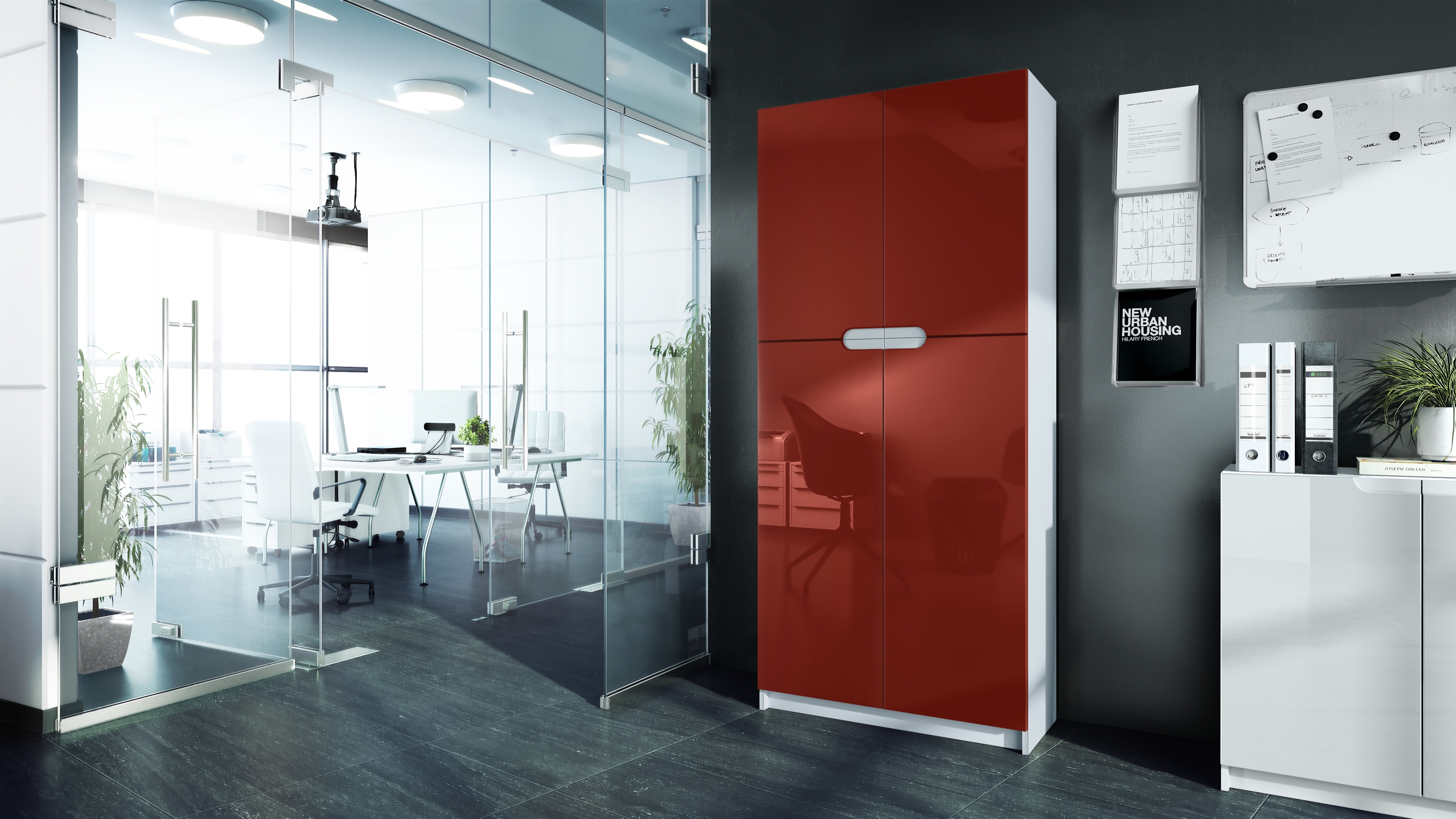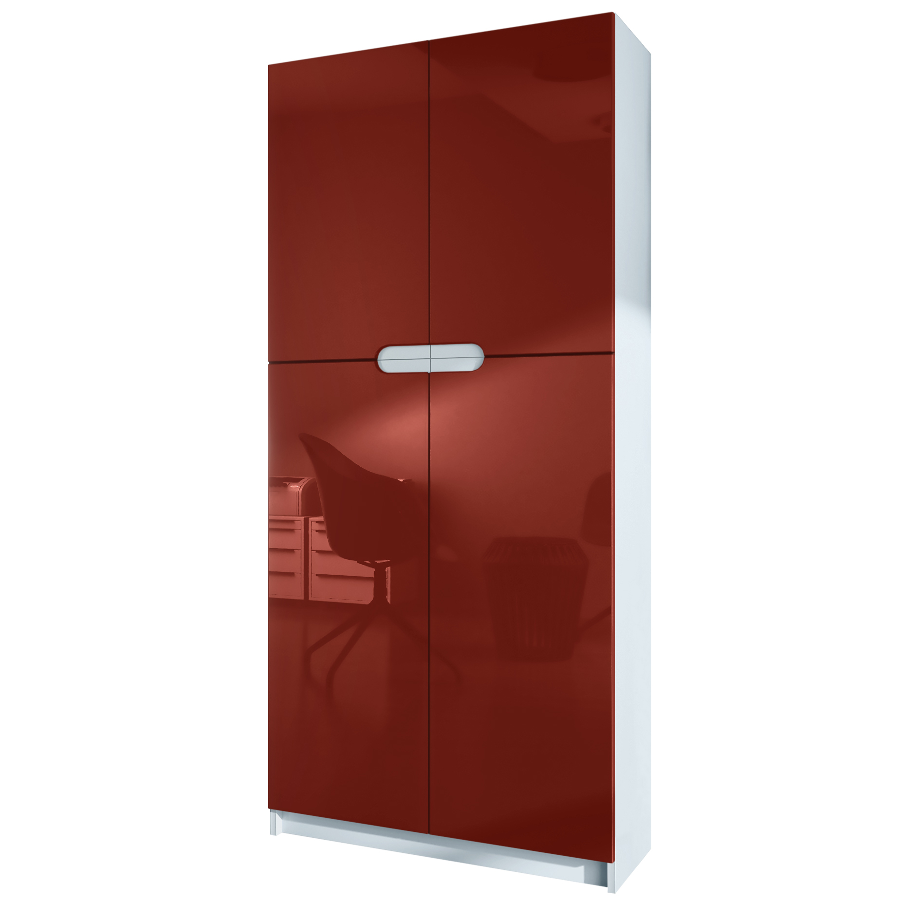 Produktinformationen "Büroschrank Logan V1 mit 5 Fächern und 4 Türen Weiß matt/Bordeaux Hochglanz (82 x 185 x 37 cm)"