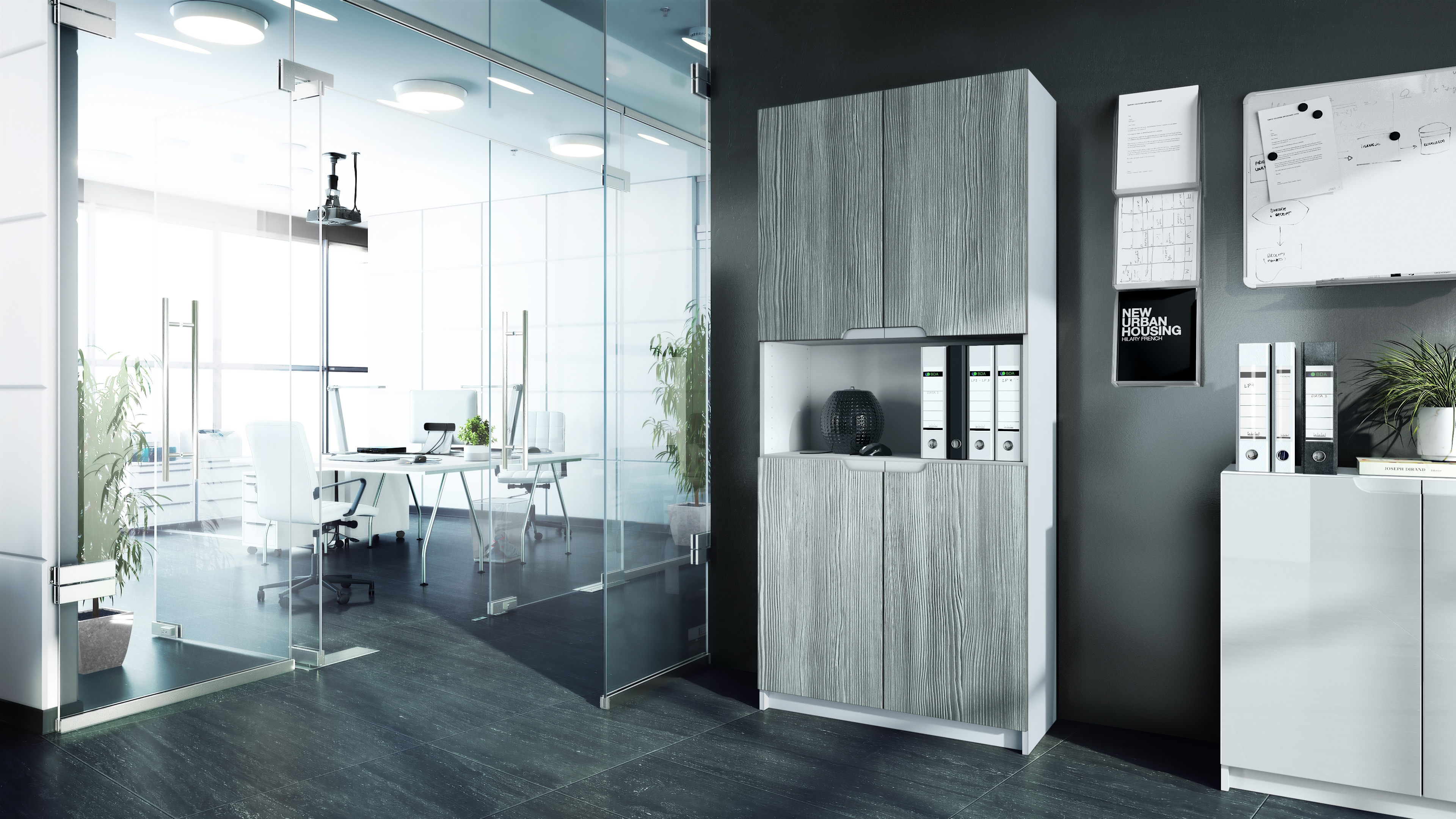 Durch das schlichte, zeitlose Design lässt sich der moderne Aktenschrank für's Büro mit vielen verschiedenen Einrichtungsstilen kombinieren. Für eine besondere Eleganz sorgen die Fronten des Büroschranks, erhältlich in vielen verschiedenen Farbvarianten, die Ihnen eine Vielzahl an Kombinationsmöglichkeiten bieten. Durch die Oberflächenbeschichtung erhalten Sie ein besonders pflegeleichtes Produkt. Für die Reinigung können Sie auf Chemie verzichten - es reicht ein leicht angefeuchtetes Tuch, um die wasserfeste Oberfläche angemessen zu reinigen.