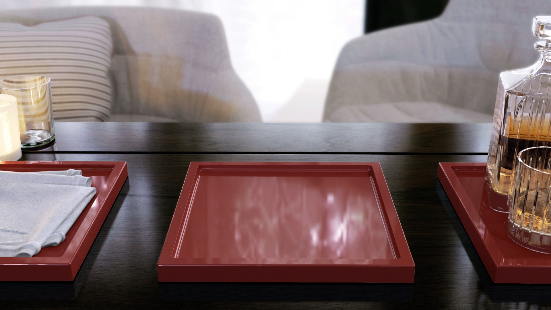 Produktinformationen "Dekoschale Maya 3-tlg. eckig Bordeaux Hochglanz, 3er Set (20 x 1,8 x 20 cm)"