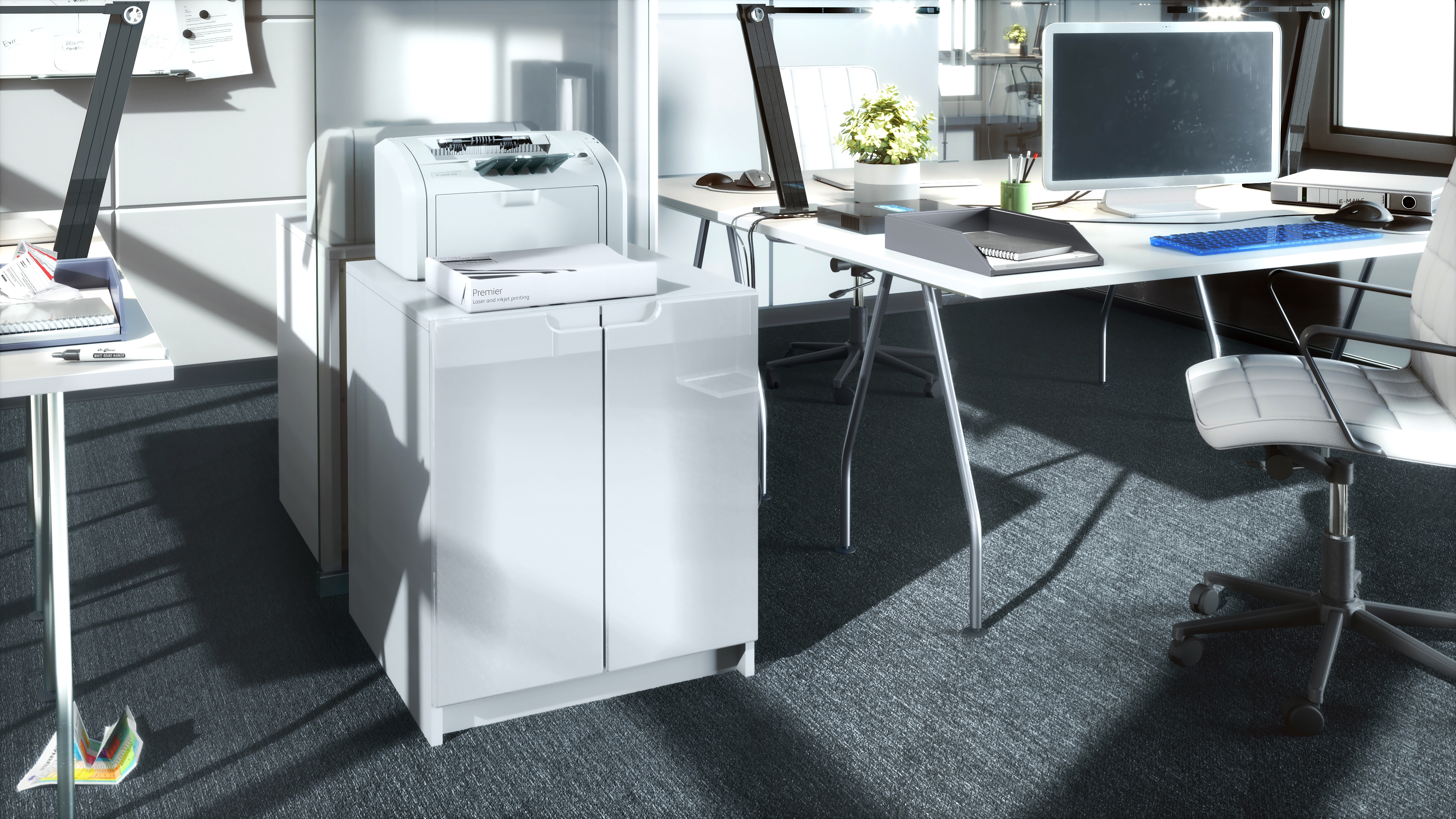Produktinformationen "Druckerkommode Logan mit 2 Fächern und 2 Türen Druckerschrank Weiß matt/Weiß Hochglanz (51 x 60,5 x 54 cm)"