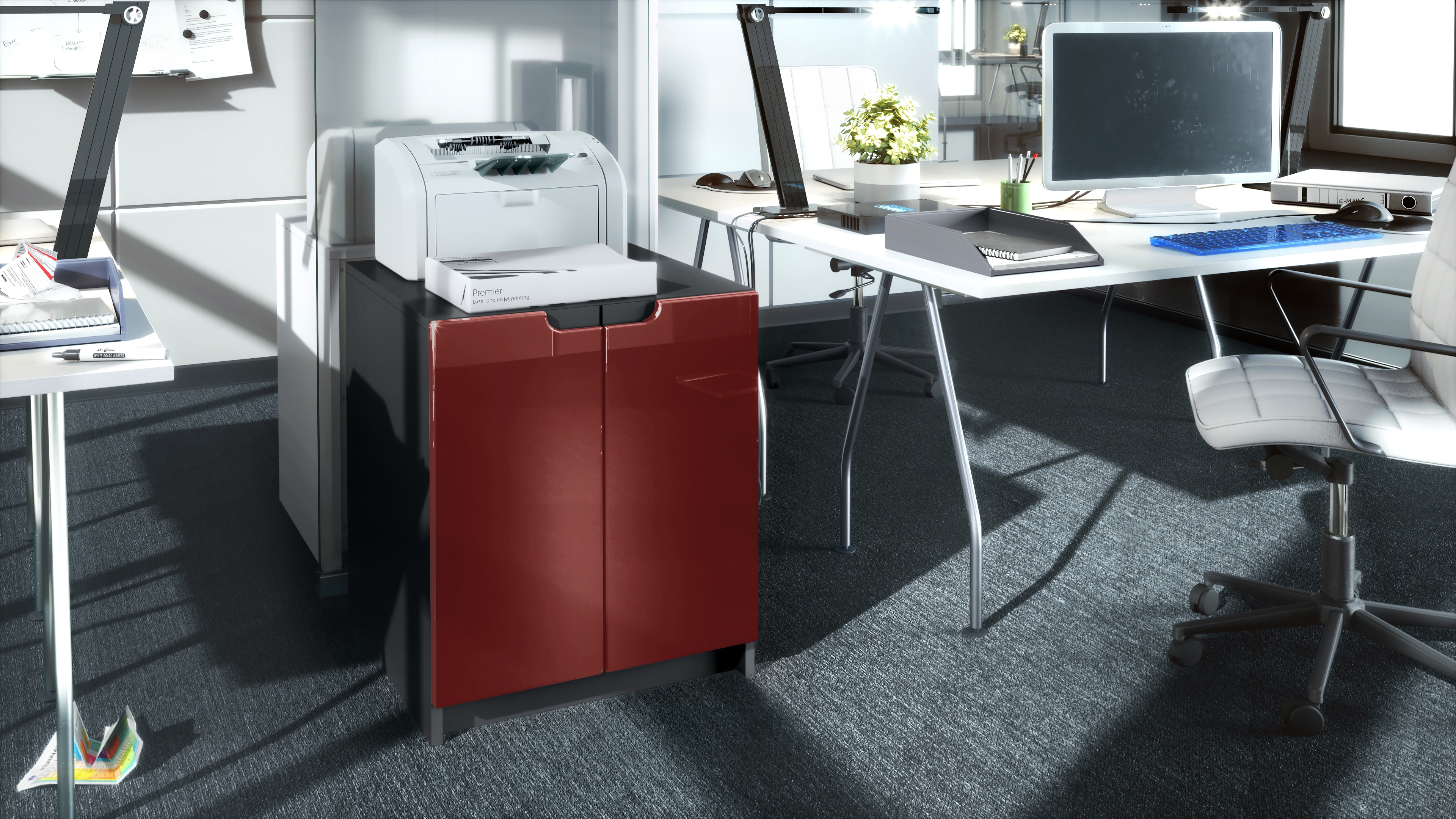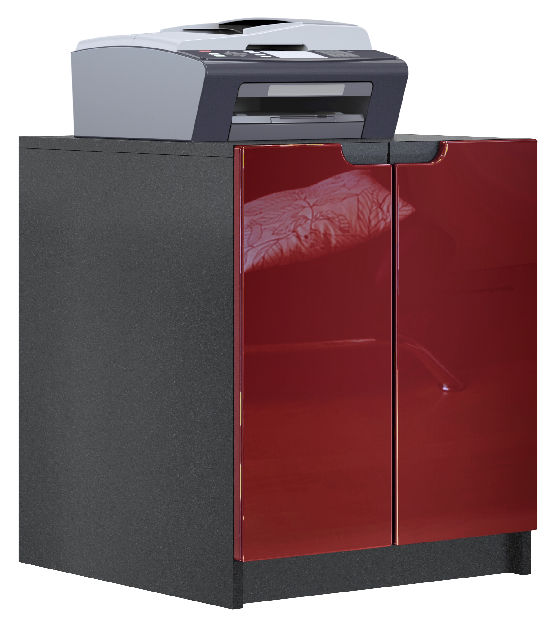 Produktinformationen "Druckerkommode Logan mit 2 Fächern und 2 Türen Schwarz matt/Bordeaux Hochglanz, (51 x 60,5 x 54 cm)"