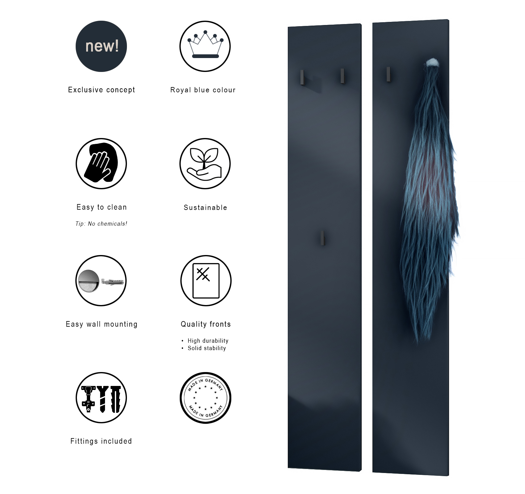 Die eleganten, minimalistischen Wandpaneele in edlem Dunkelgrün oder Dunkelblau fügen sich harmonisch in jeden Flur ein. Dank einer matten, pflegeleichten Beschichtung sind sie leicht zu reinigen – ein feuchtes Tuch genügt für die Reinigung.