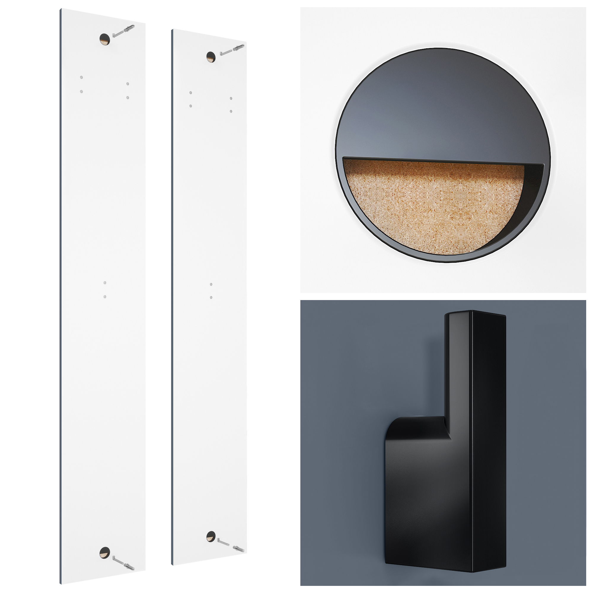 Ob Jacken und Mäntel an den oberen Haken oder Taschen und Accessoires an den unteren – die Garderobenhaken aus robustem schwarzem Kunststoff bieten praktische und sichere Aufhängemöglichkeiten. Kombinieren Sie die Wandpaneele der Enigma 140 mit weiteren Flurmöbeln oder nutzen Sie sie als stilvolles Einzelstück für einen aufgeräumten Eingangsbereich.