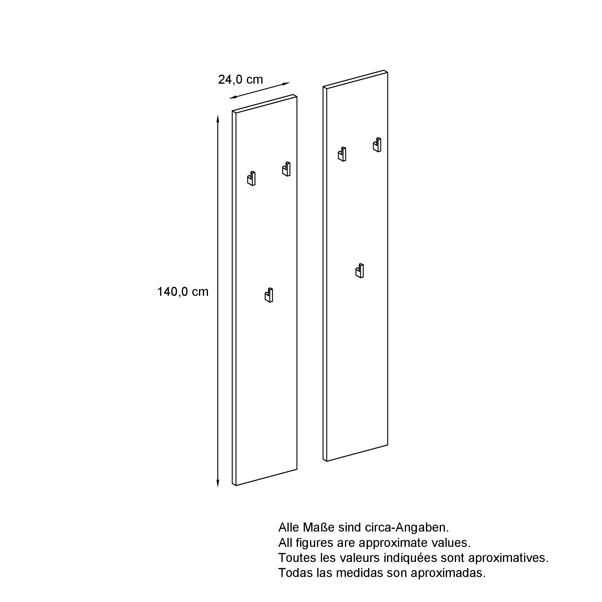 Einzelnes Garderobenpaneel (BxHxT): 24 x 140 x 2 cm