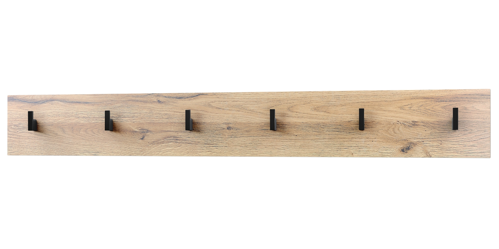 Produktinformationen "Garderobenleiste Linea V1 mit 6 Kleiderhaken Eiche Natur (110,5 x 14,5 x 3,5 cm)"