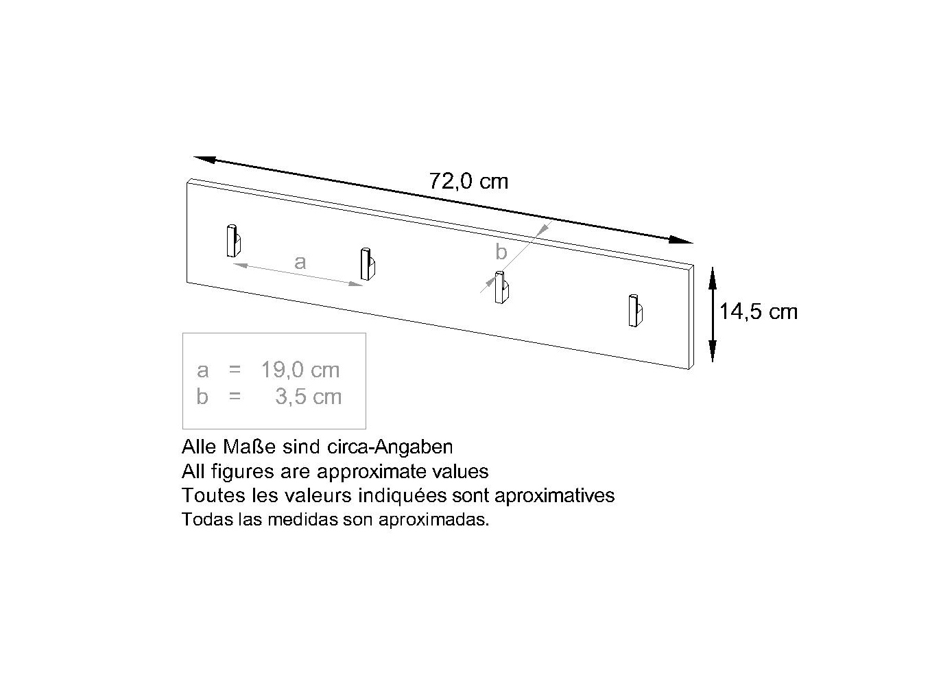 Maße des Garderobenpaneels mit Haken: