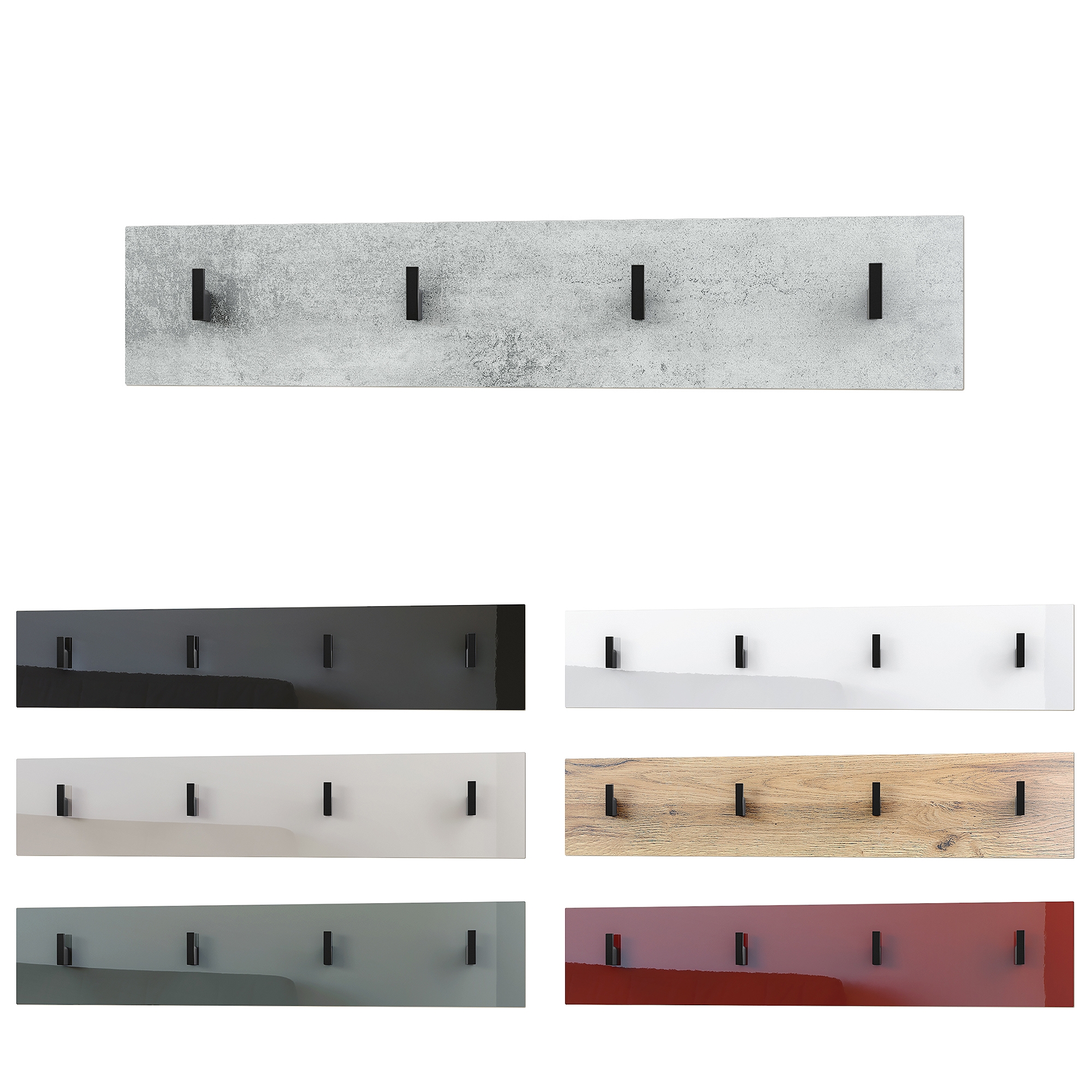 Produktinformationen "Garderobenleiste Linea V2 mit 4 Kleiderhaken Beton Oxid Optik (72 x 14,5 x 3,5 cm)"