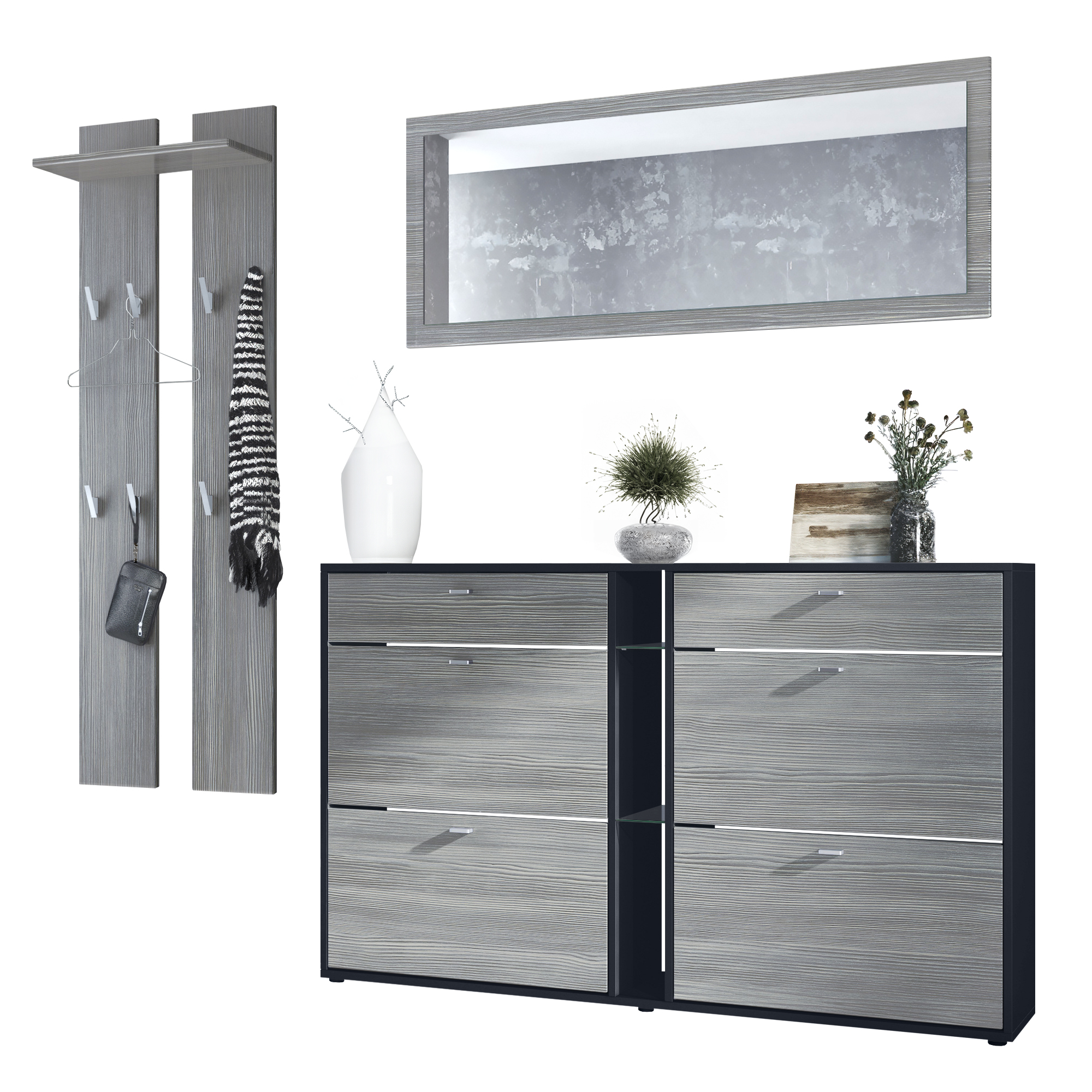 Produktinformationen "Garderobenset 3-tlg. Orlando mit Schuhschrank, Wandpaneel und Wandspiegel Schwarz matt/Avola-Anthrazit"