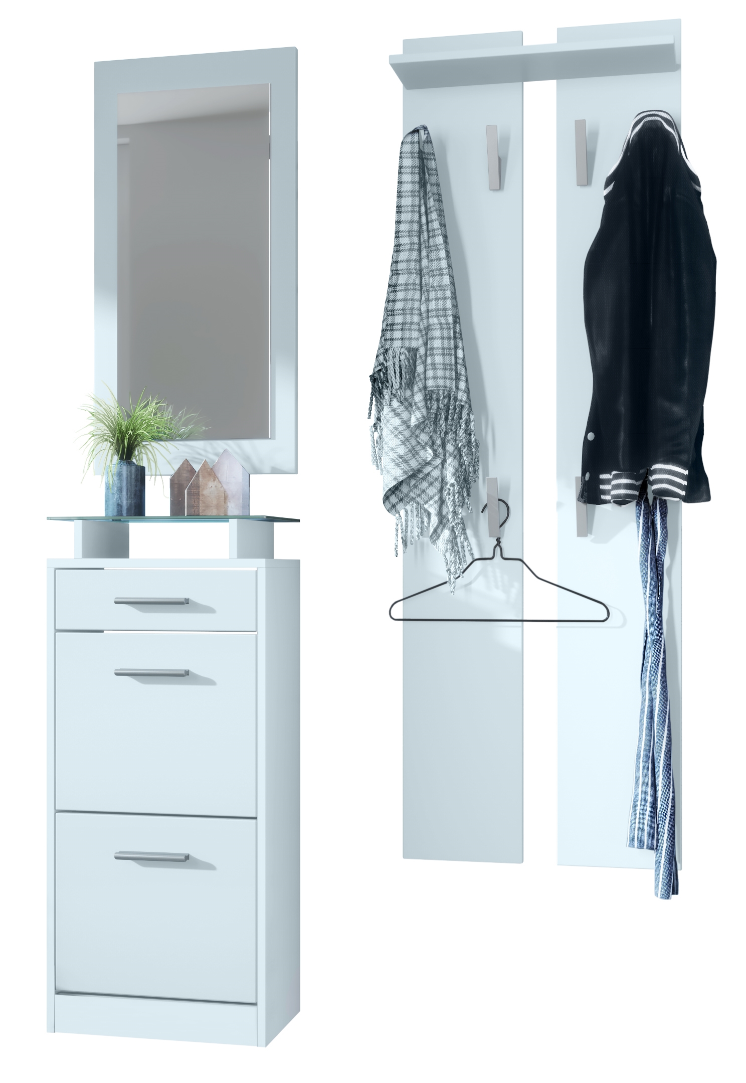 Produktinformationen "Garderobenset Loret V2 mini 1 Wandspiegel, 2 Garderobenpaneele Weiß matt (140 x 23 x 200 cm)"