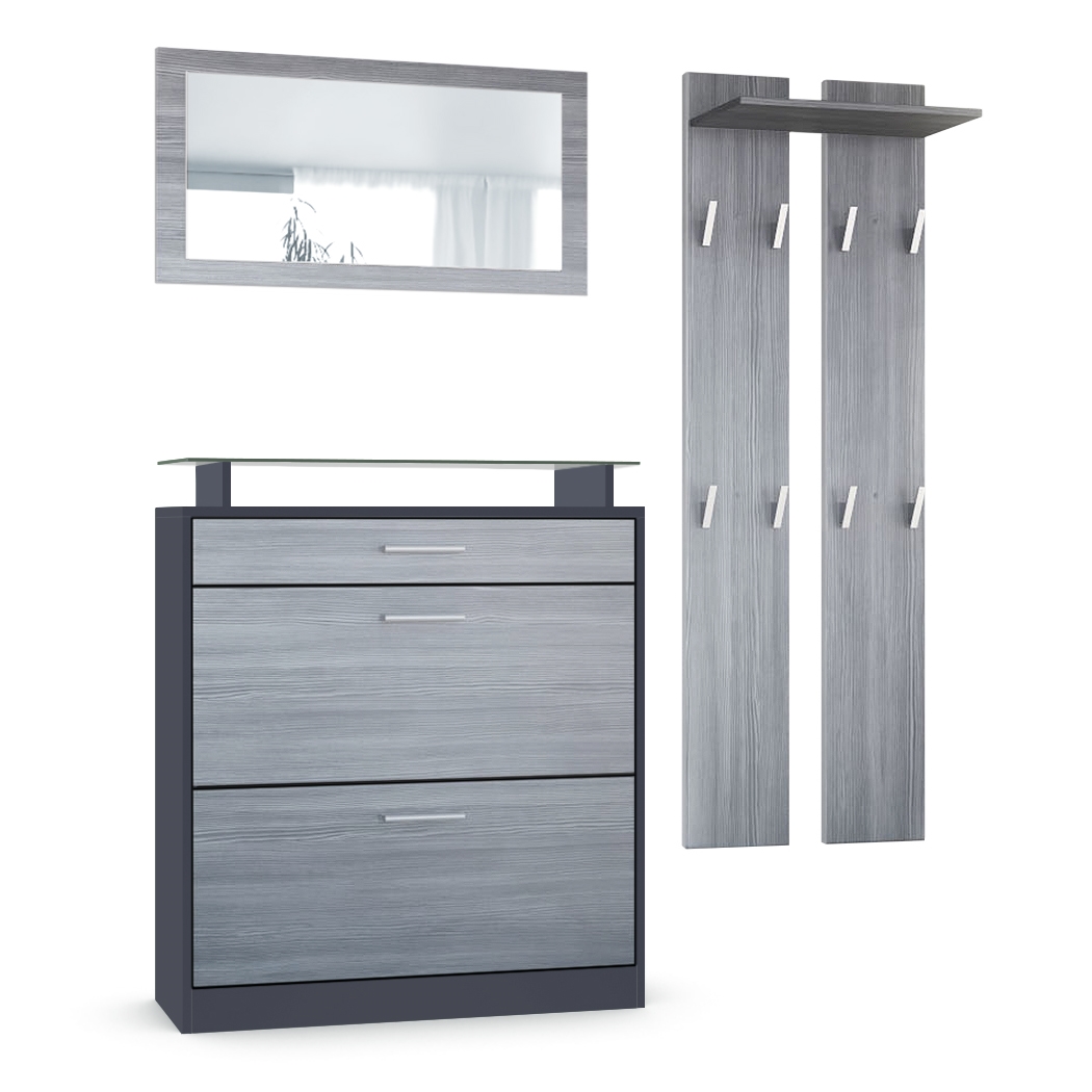 Produktinformationen "Garderobenset Loret mini 1 Wandspiegel, 2 Garderobenpaneele, Anthrazit matt/Avola-Anthrazit (Schuhschrank 89 x 104 x 23 cm)"