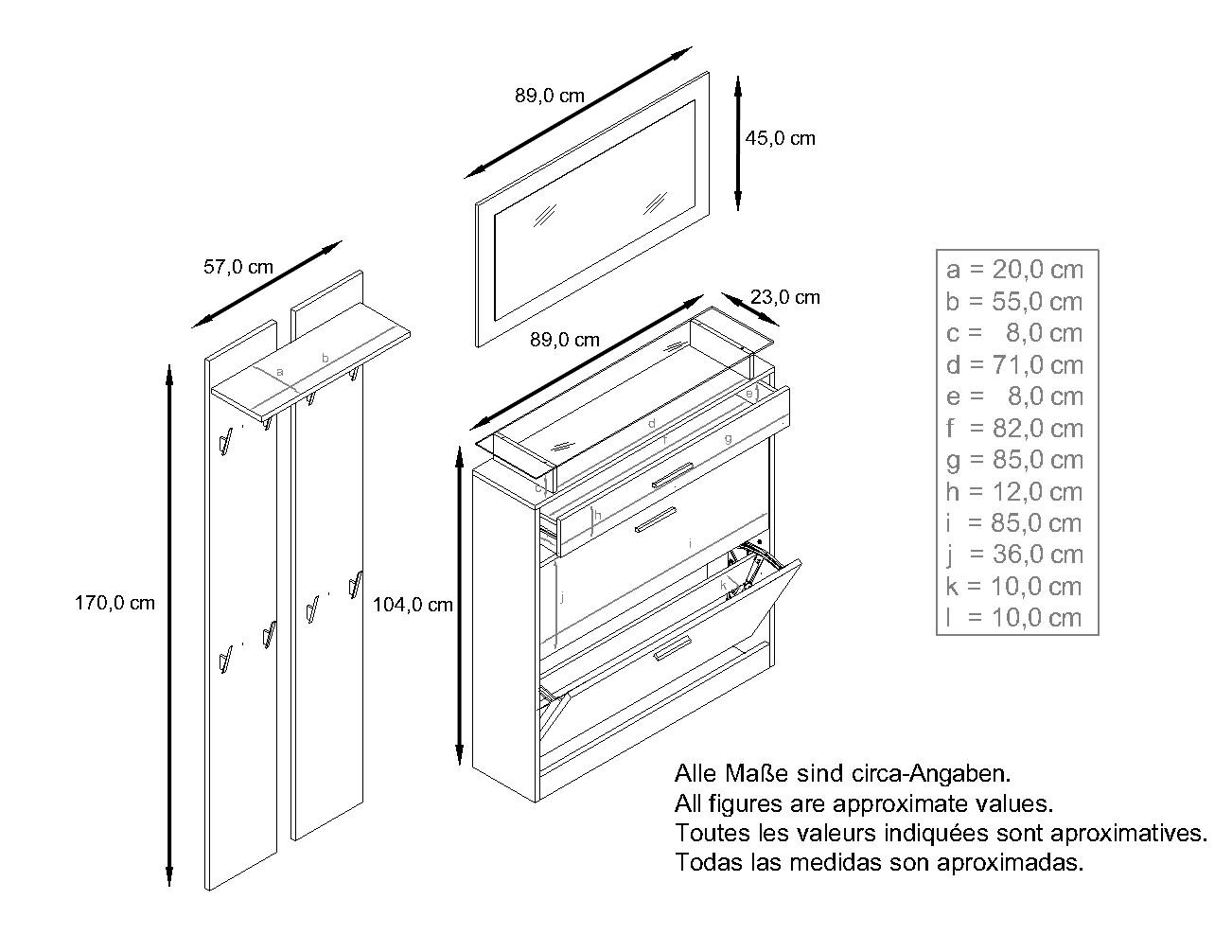 Maße des Schuhschranks (BxHxT): 89 x 104 x 23 cm