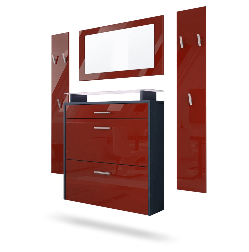 Produktinformationen "Garderobenset Malea 1 Wandspiegel und 2 Garderobenpaneele Anthrazit matt/Bordeaux Hochglanz, inkl. LED-Beleuchtung weiß"