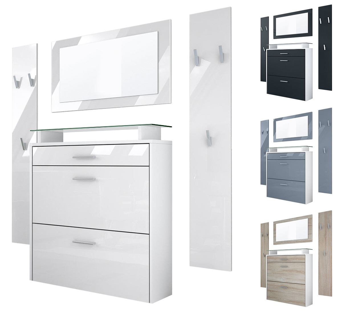 Für eine besondere Eleganz sorgen die Fronten des Garderobensets, die eine Vielzahl an Kombinationsmöglichkeiten bieten. Durch die Oberflächenbeschichtung der einzelnen Möbelstücke erhalten Sie besonders pflegeleichte Produkte. Für die Reinigung können Sie auf Chemie verzichten - es reicht ein leicht angefeuchtetes Tuch, um die wasserfesten Oberflächen angemessen zu reinigen.