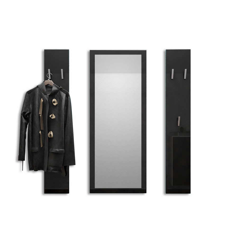Produktinformationen "Garderobenset Spot mit 2 Garderobenpaneelen und 1 Spiegel Schwarz Hochglanz (Paneel: 24 x 140 x 10 cm/Spiegel: 55 x 139 x 2 cm)"
