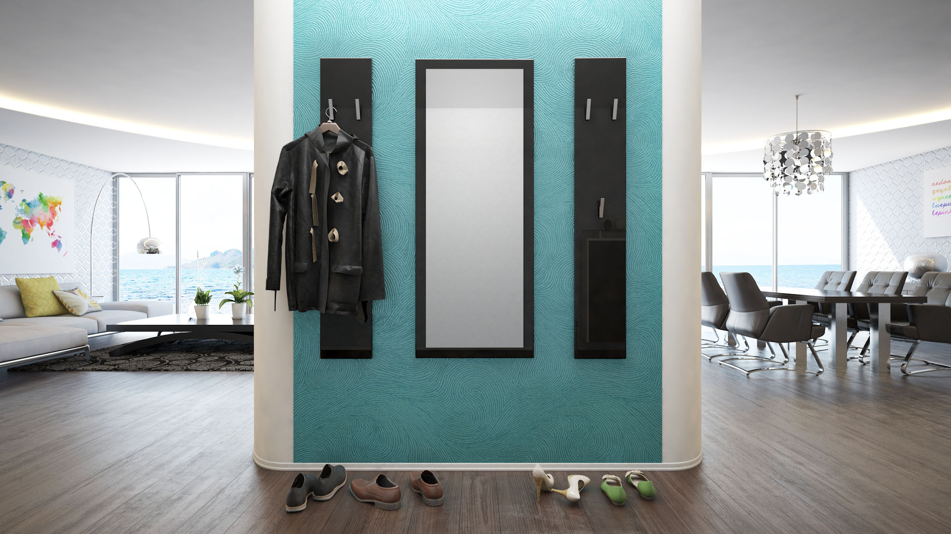 Die Elemente des Garderobensets lassen sich mühelos an der Wand befestigen, wobei der Spiegel sowohl horizontal als auch vertikal montiert werden kann. Diese flexible Anpassungsmöglichkeit ermöglicht es Ihnen, den Raum optimal zu gestalten. Die Garderobenpaneele sind mit einer praktischen Kombination aus 1 Hut- und 2 Mantelhaken ausgestattet, die in verschiedenen Höhenpositionen angebracht sind. Dies bietet nicht nur Erwachsenen, sondern auch Kindern eine bequeme und leicht zugängliche Lösung, um Jacken und Mäntel eigenständig aufzuhängen.