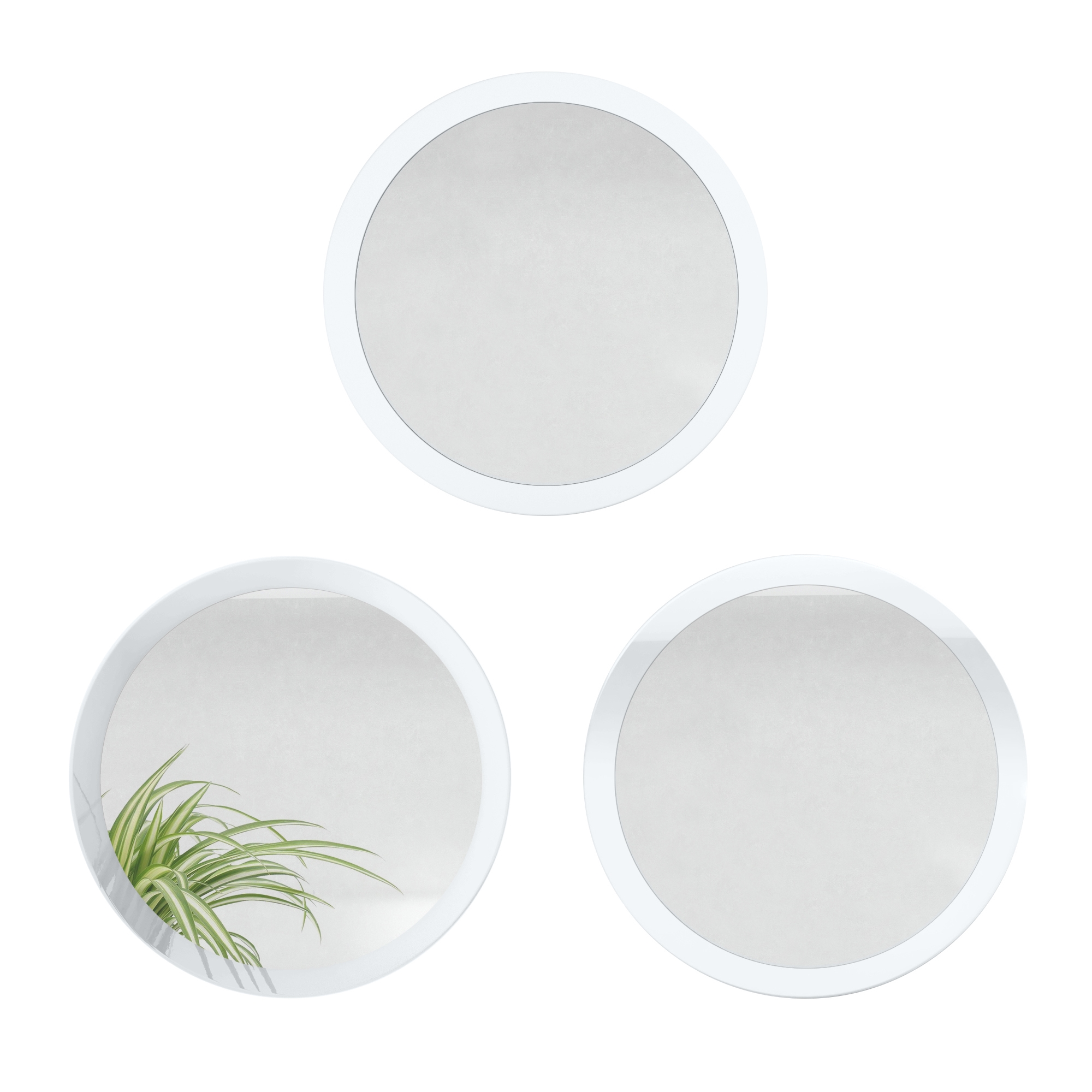 Globe Spiegel 3er Set für Flur und Wohnzimmer mit MDF-Rahmen in Weiß Hochglanz (50 cm Durchmesser)