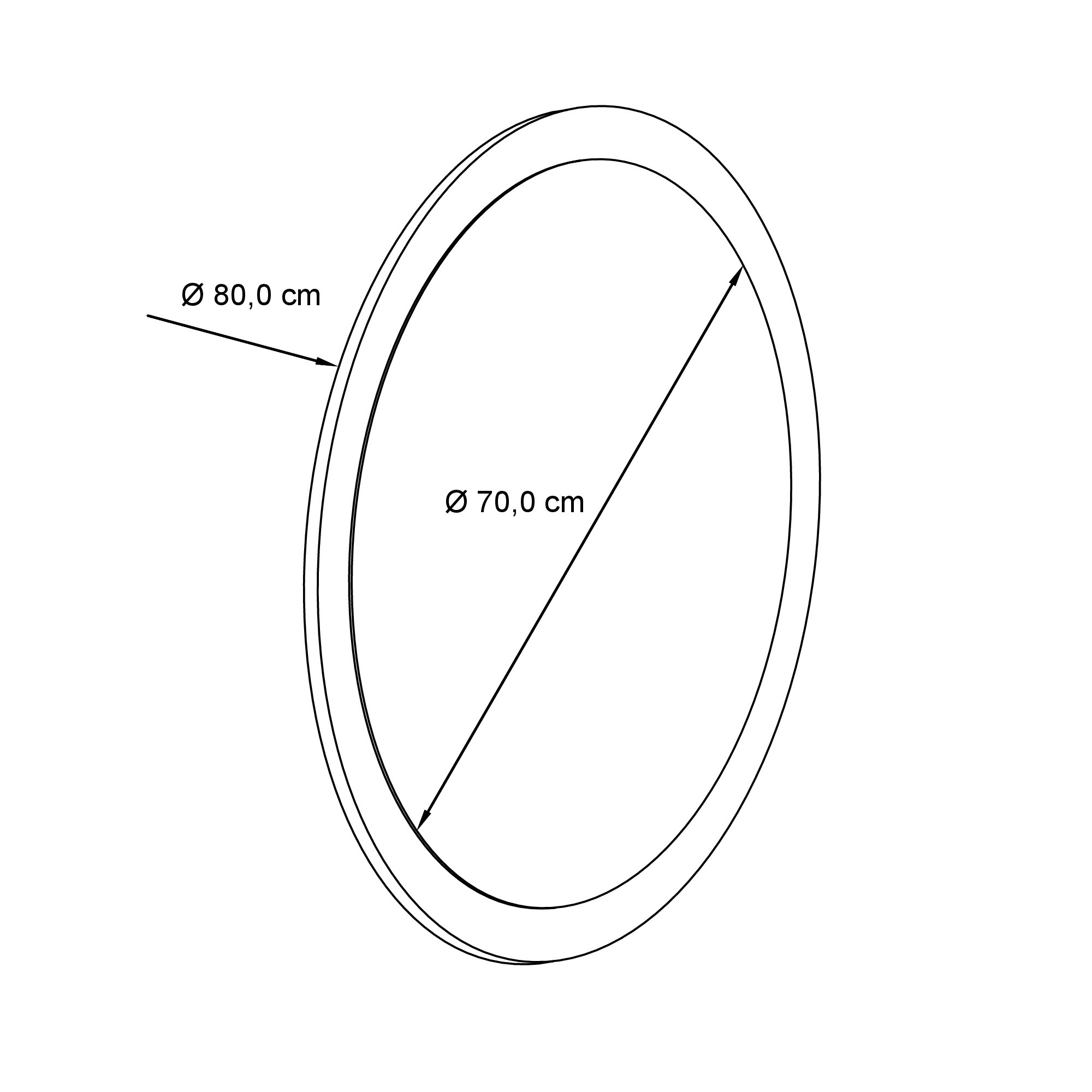 Der runde Globe Wandspiegel von Vladon ist ein stilvolles und dekoratives Highlight für jeden Raum. Er hat einen Durchmesser von 80 cm, das Spiegelglas selbst hat einen Durchmesser von 70 cm.