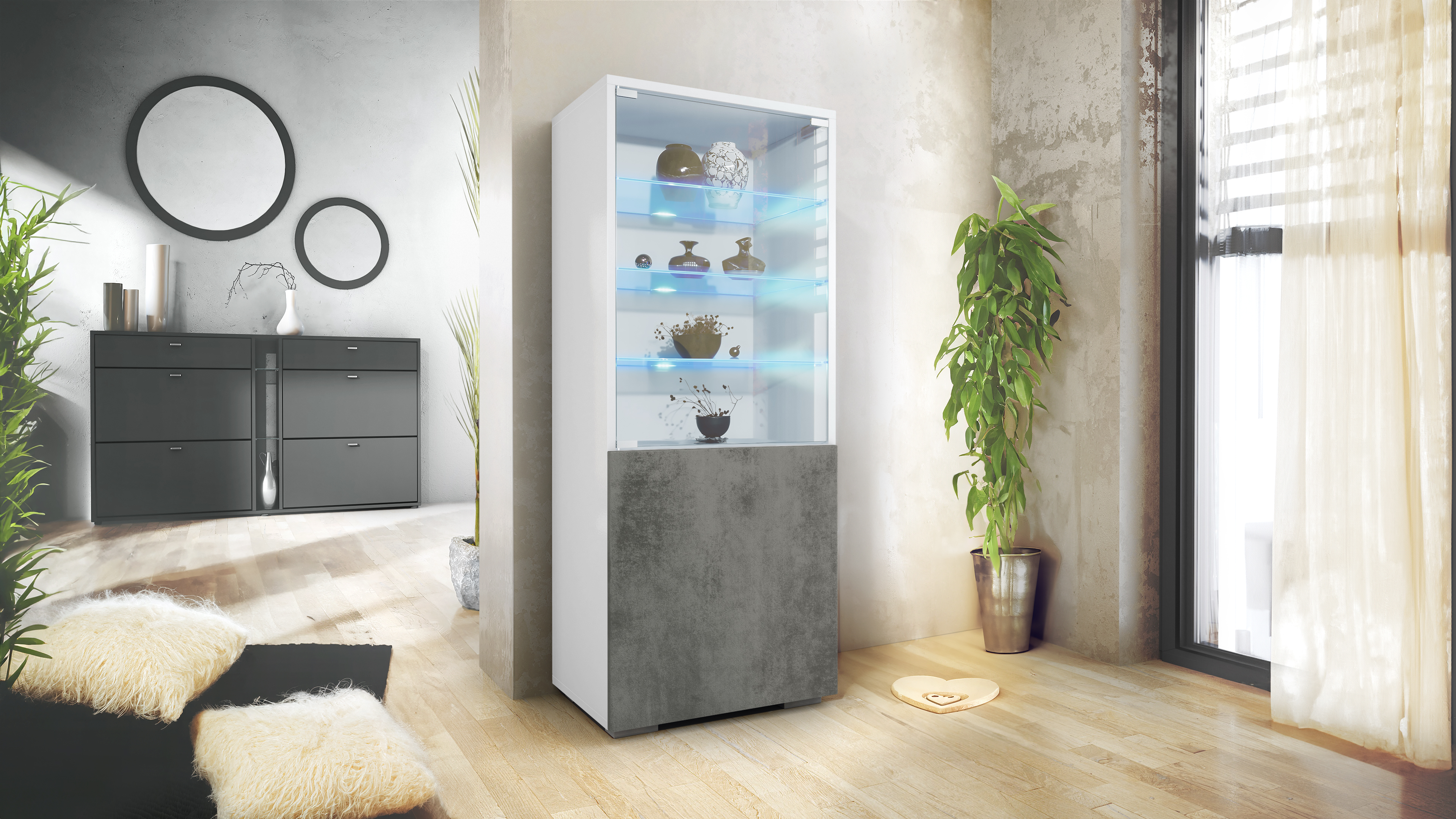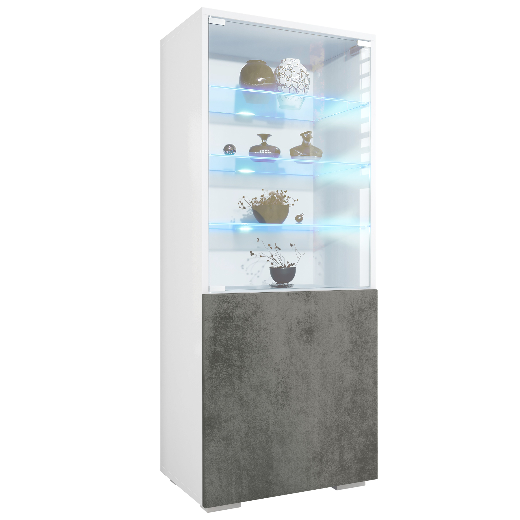 Produktinformationen "Granada Vitrine Weiß mit LED mit Glastür und Glaseinsatz inkl. LED Weiß matt/Beton Dunkel Optik (50 x 122,5 x 34,5 cm)"