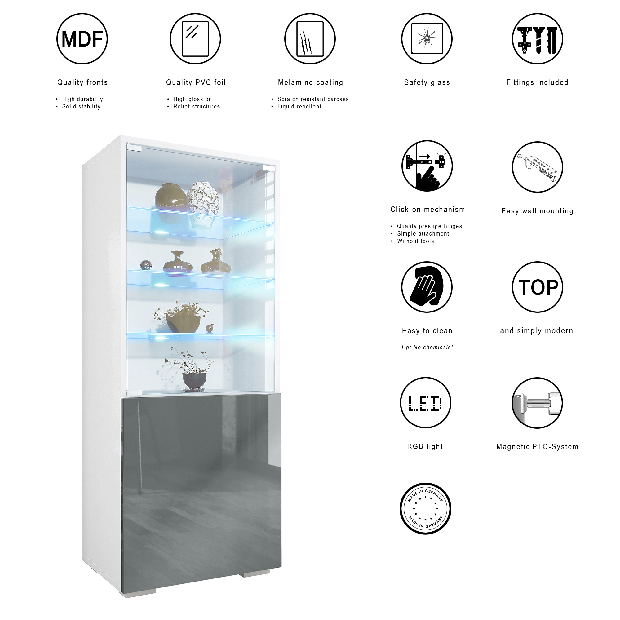 Produktinformationen "Granada Vitrine Weiß mit LED mit Glastür und Glaseinsatz inkl. LED Weiß matt/Denim matt (50 x 122,5 x 34,5 cm)"