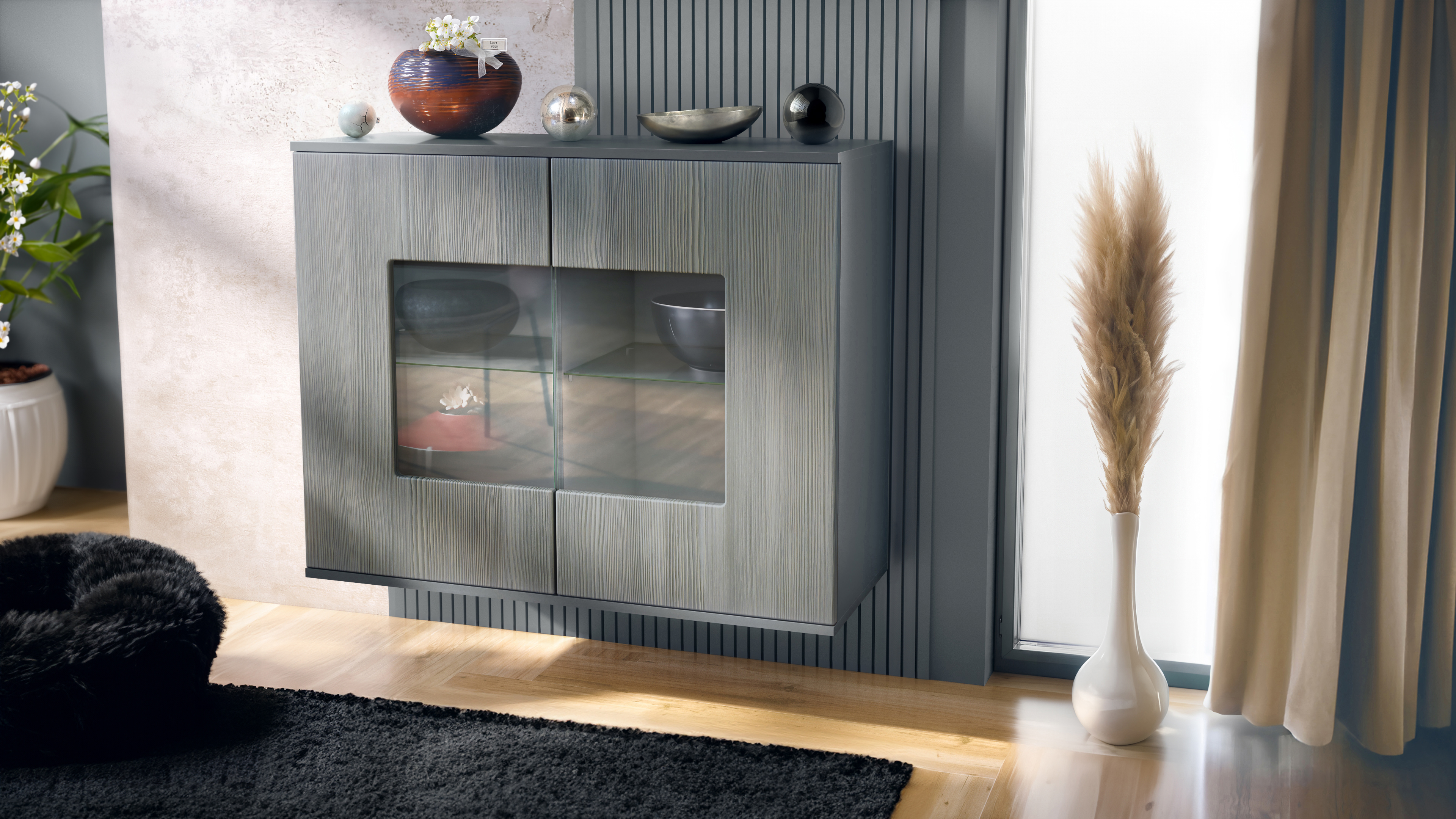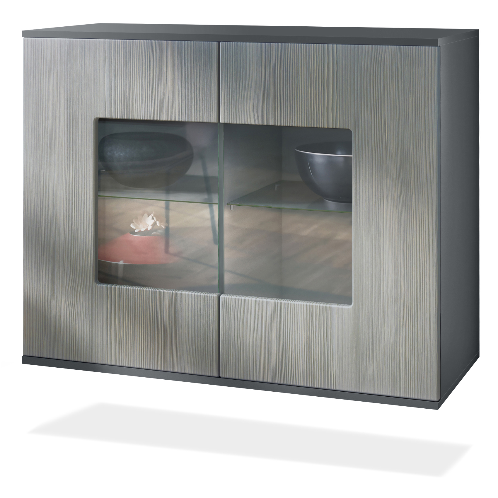 Produktinformationen "Grömitz V3 Kommode Anthrazit mit 2 großen Glastüren Anthrazit matt / Avola-Anthrazit (92,5 x 73.5 x 35)"