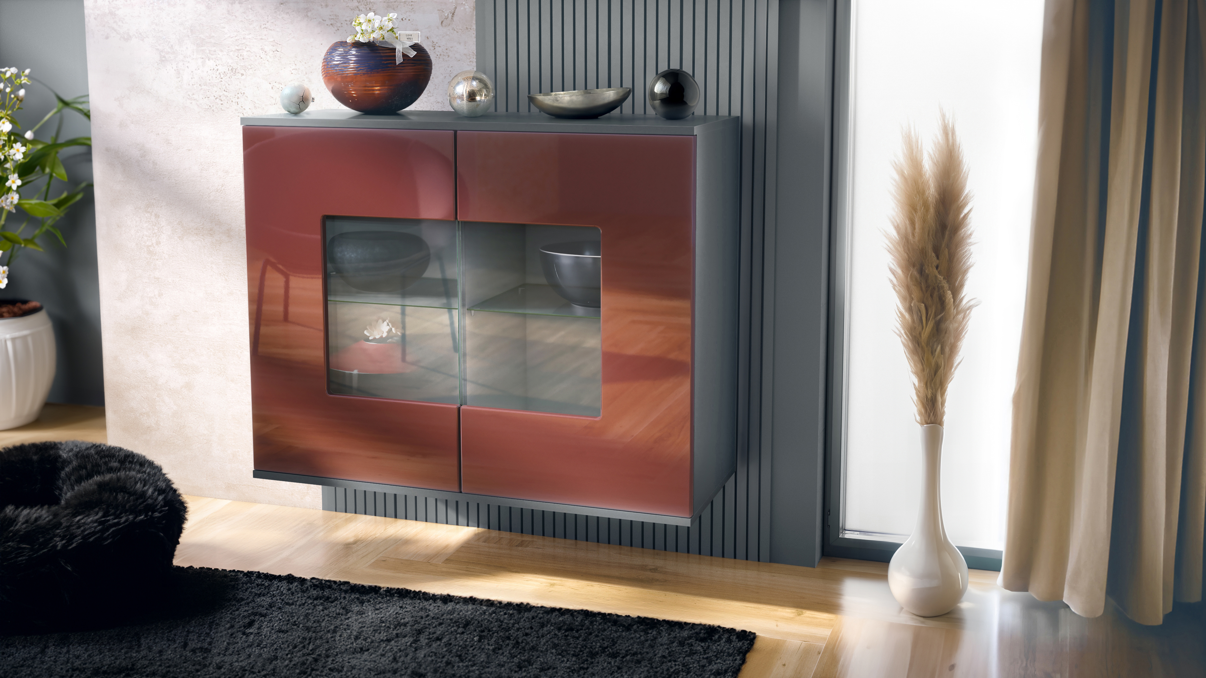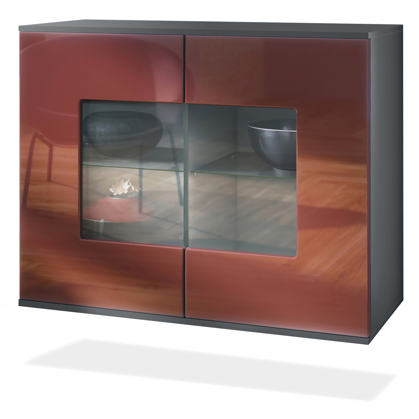 Produktinformationen "Grömitz V3 Kommode Anthrazit mit 2 großen Glastüren Anthrazit matt / Bordeaux Hochglanz (92,5 x 73.5 x 35)"