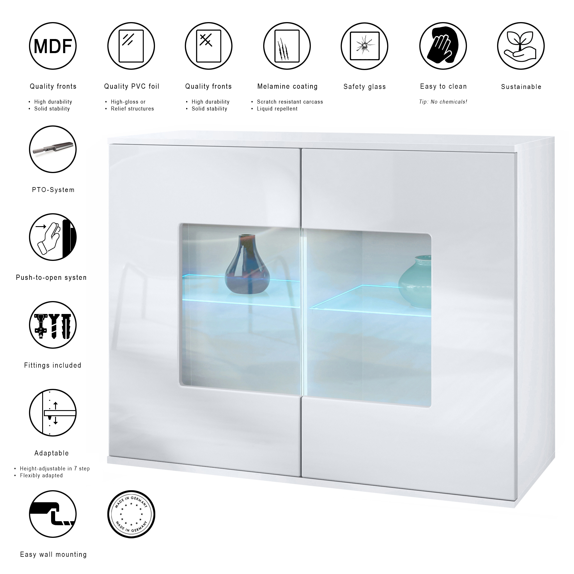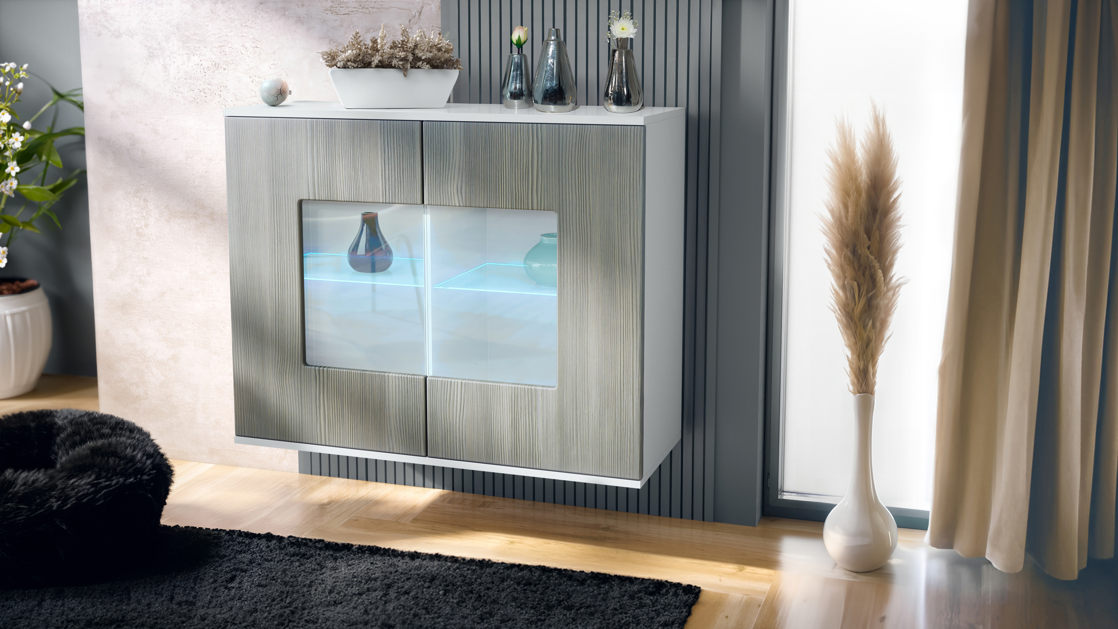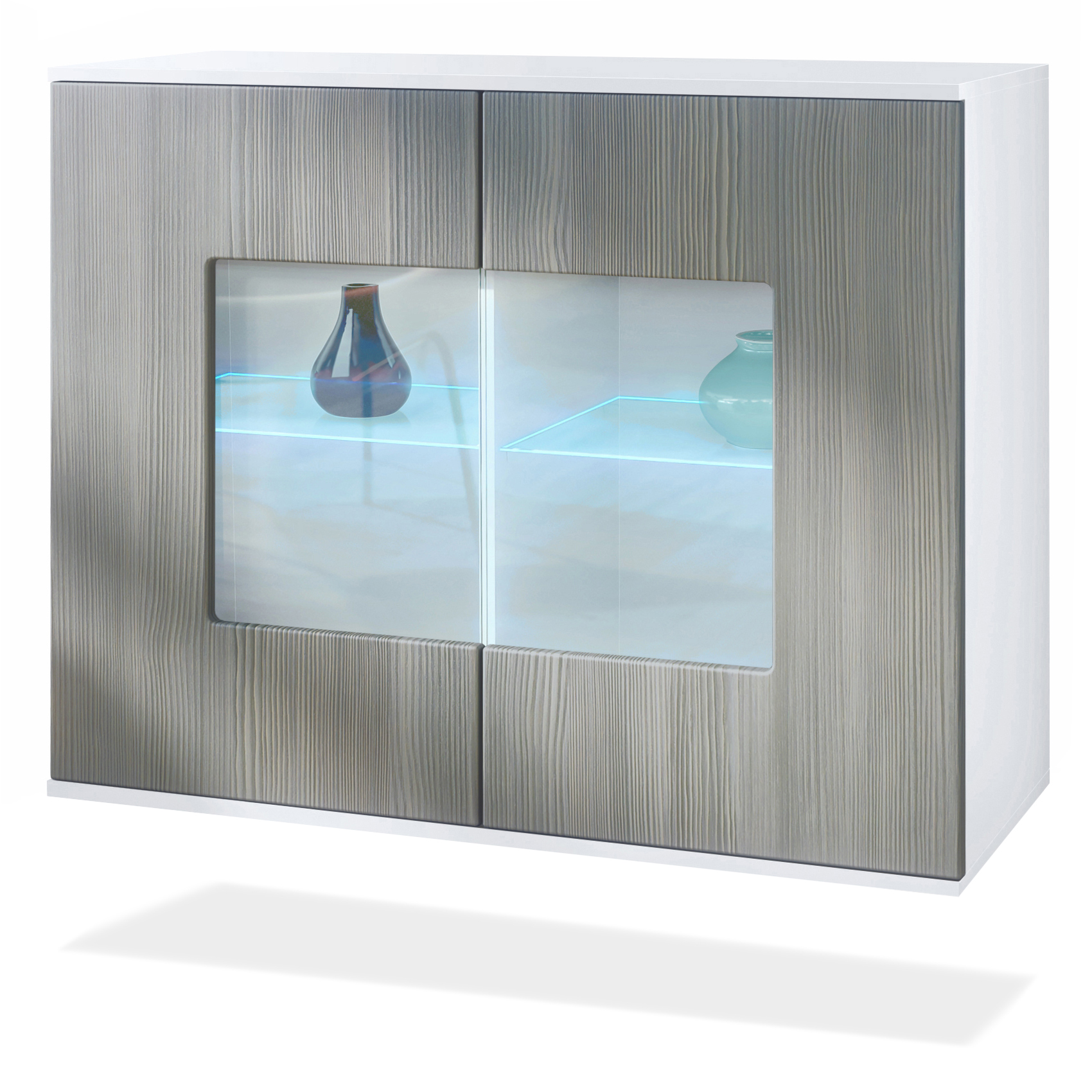 Produktinformationen "Grömitz V3 Kommode Weiß + LED mit 2 großen Glastüren inkl. RGB Beleuchtung Weiß matt / Avola-Anthrazit (92,5 x 73.5 x 35)"