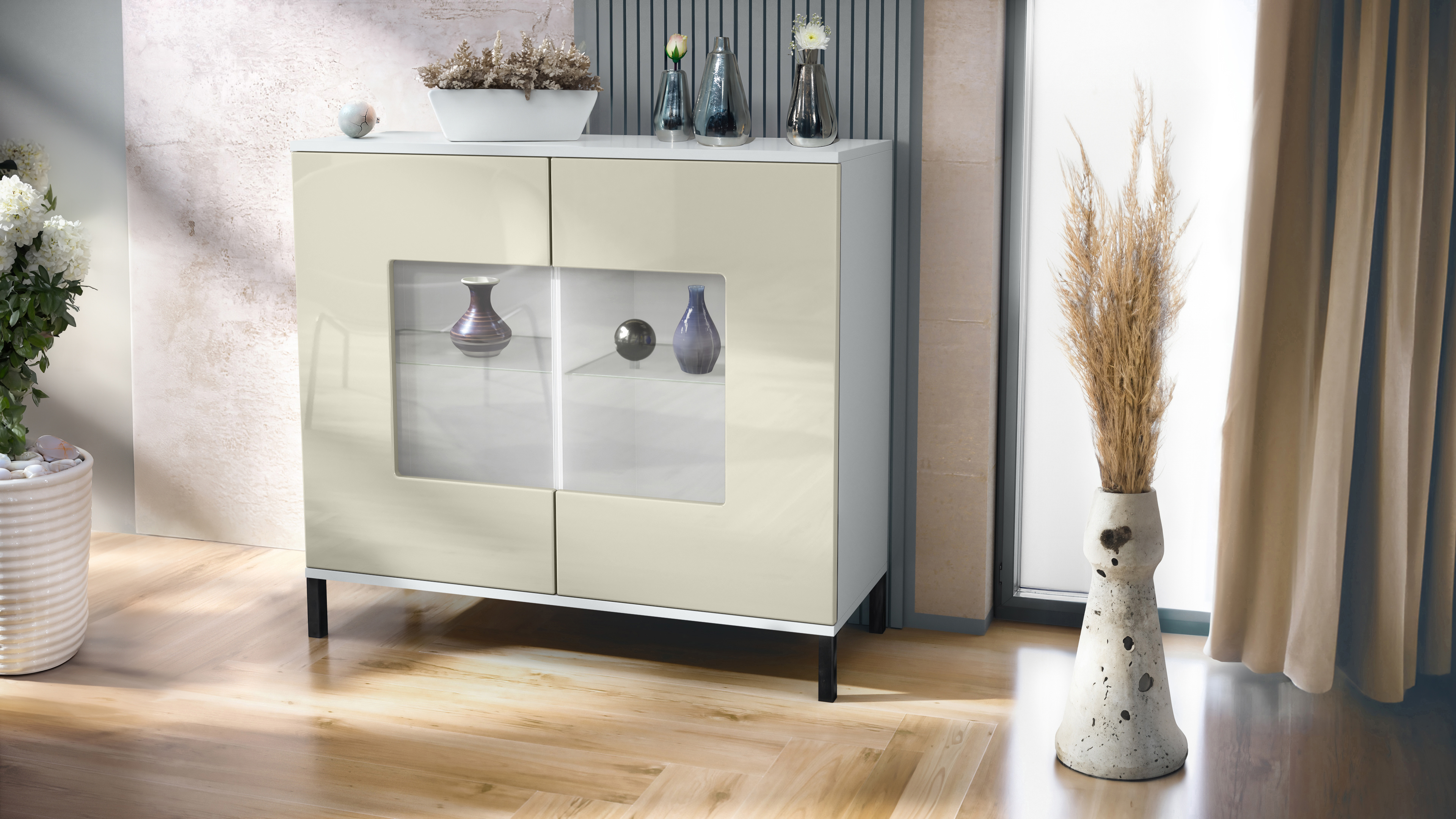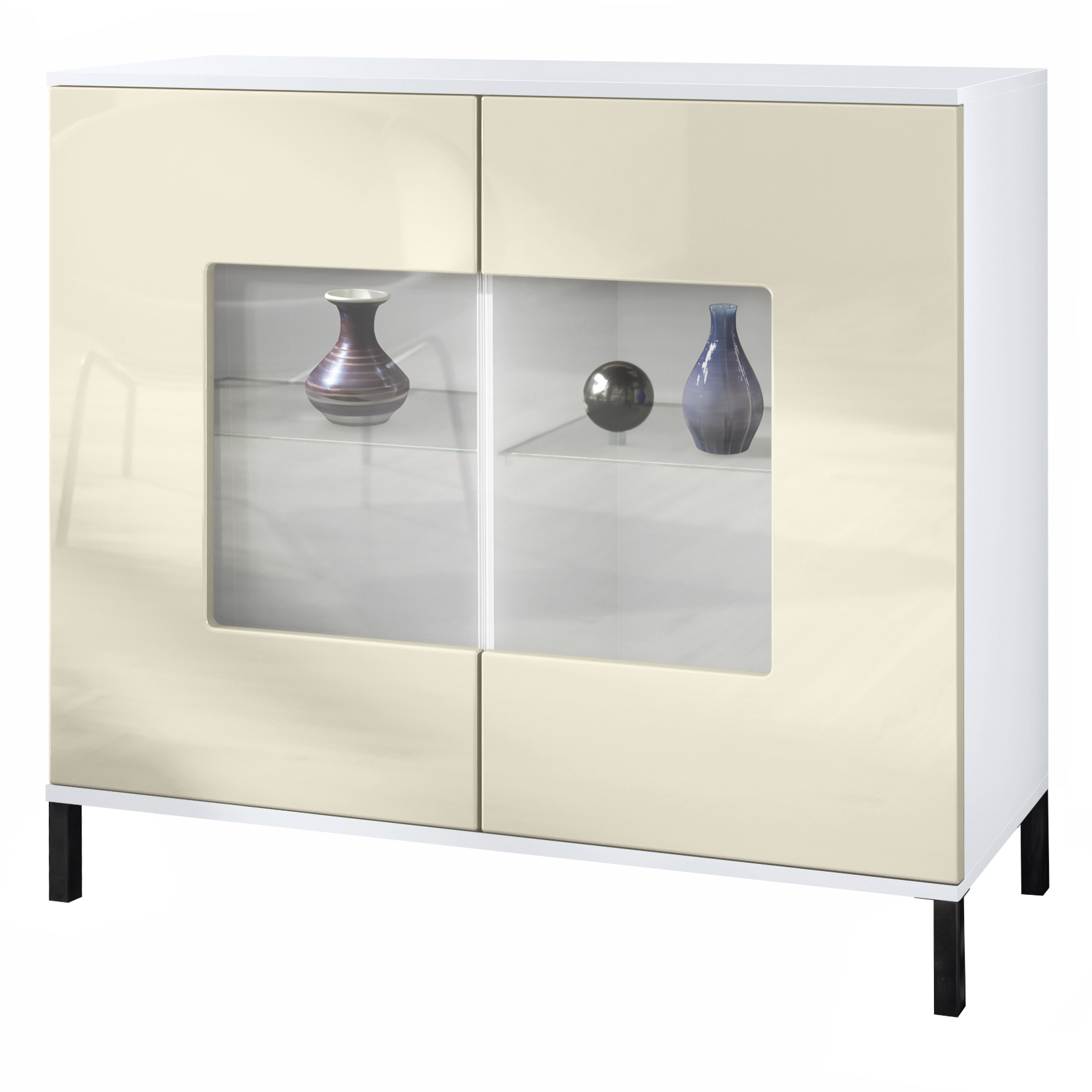 Produktinformationen "Grömitz V3 Kommode Weiß mit 2 großen Glastüren Weiß matt / Creme Hochglanz (92,5 x 83.5 x 35)"