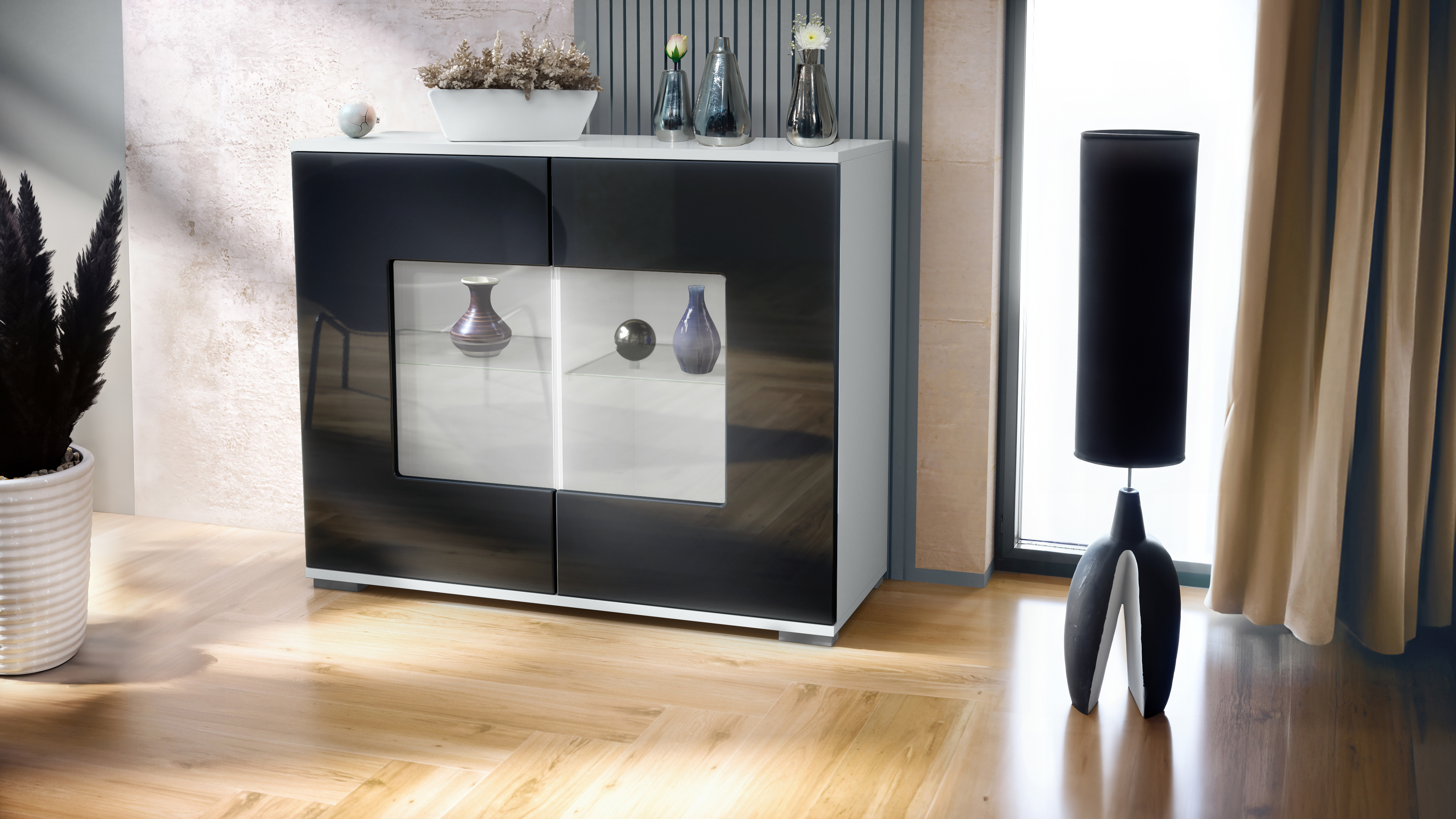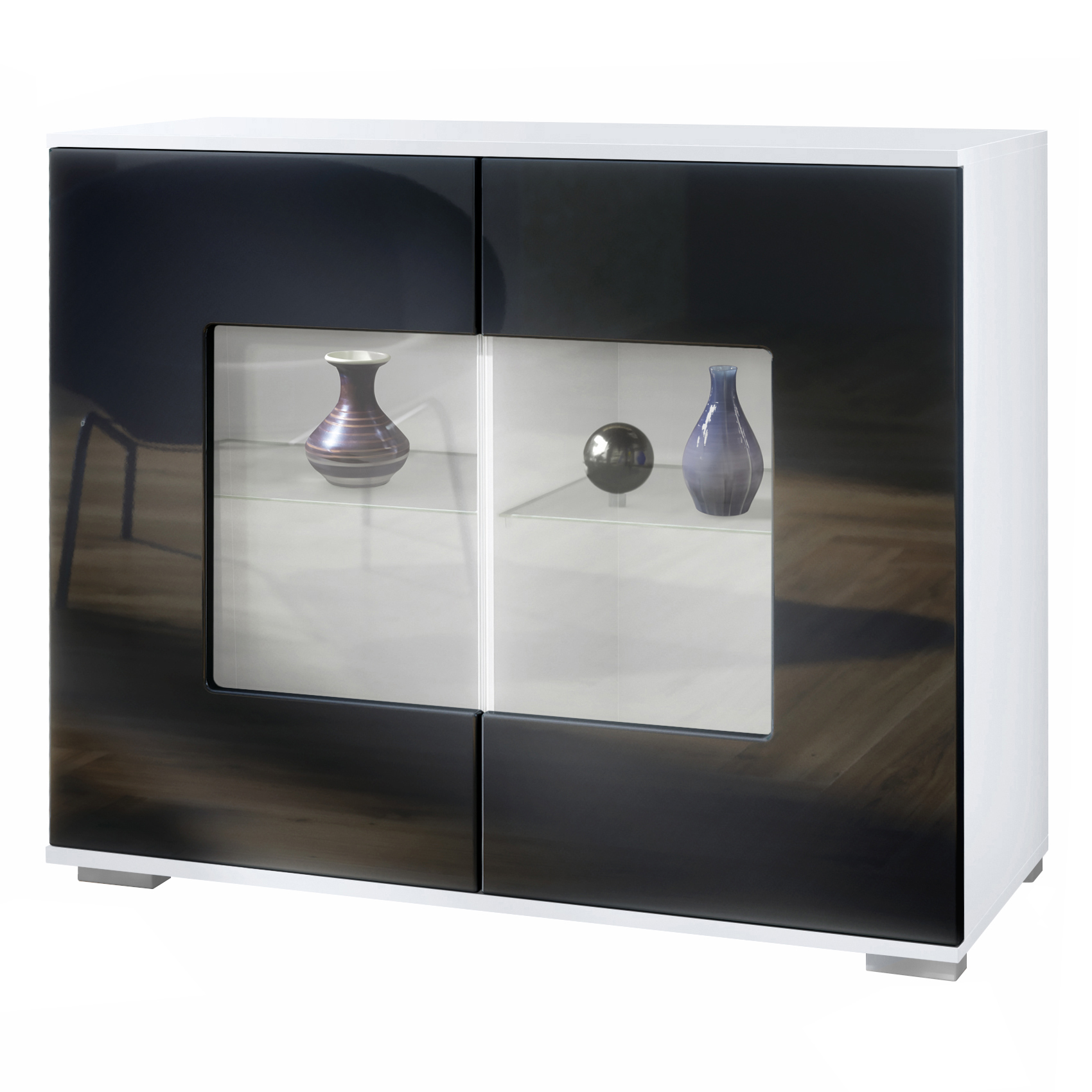 Produktinformationen "Grömitz V3 Kommode Weiß mit 2 großen Glastüren Weiß matt / Schwarz Hochglanz (92,5 x 75.5 x 35)"