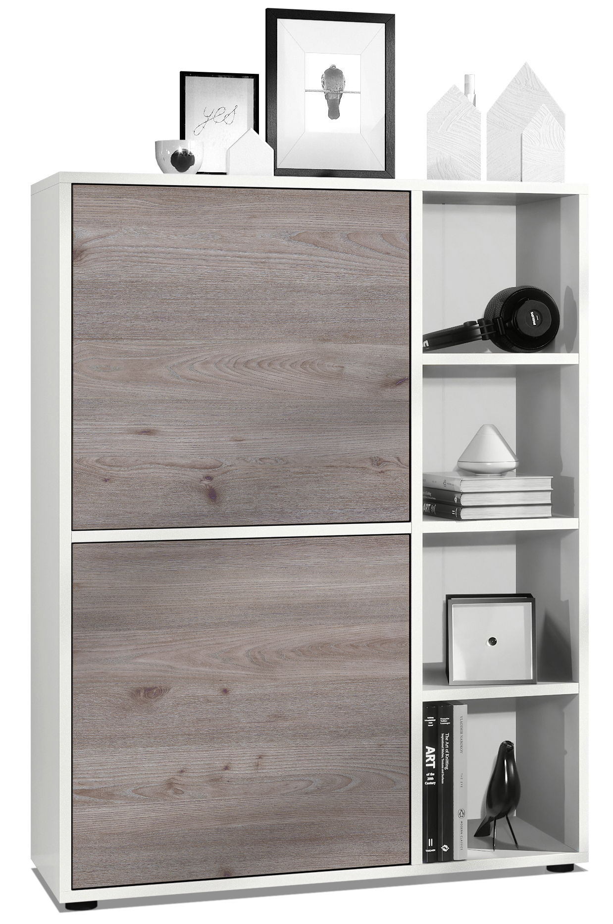 Produktinformationen "Highboard Cuba mit 2 Türen und 4 offene Fächer Weiß matt/Eiche Nordic (79 x 105,5 x 35,5 cm)"