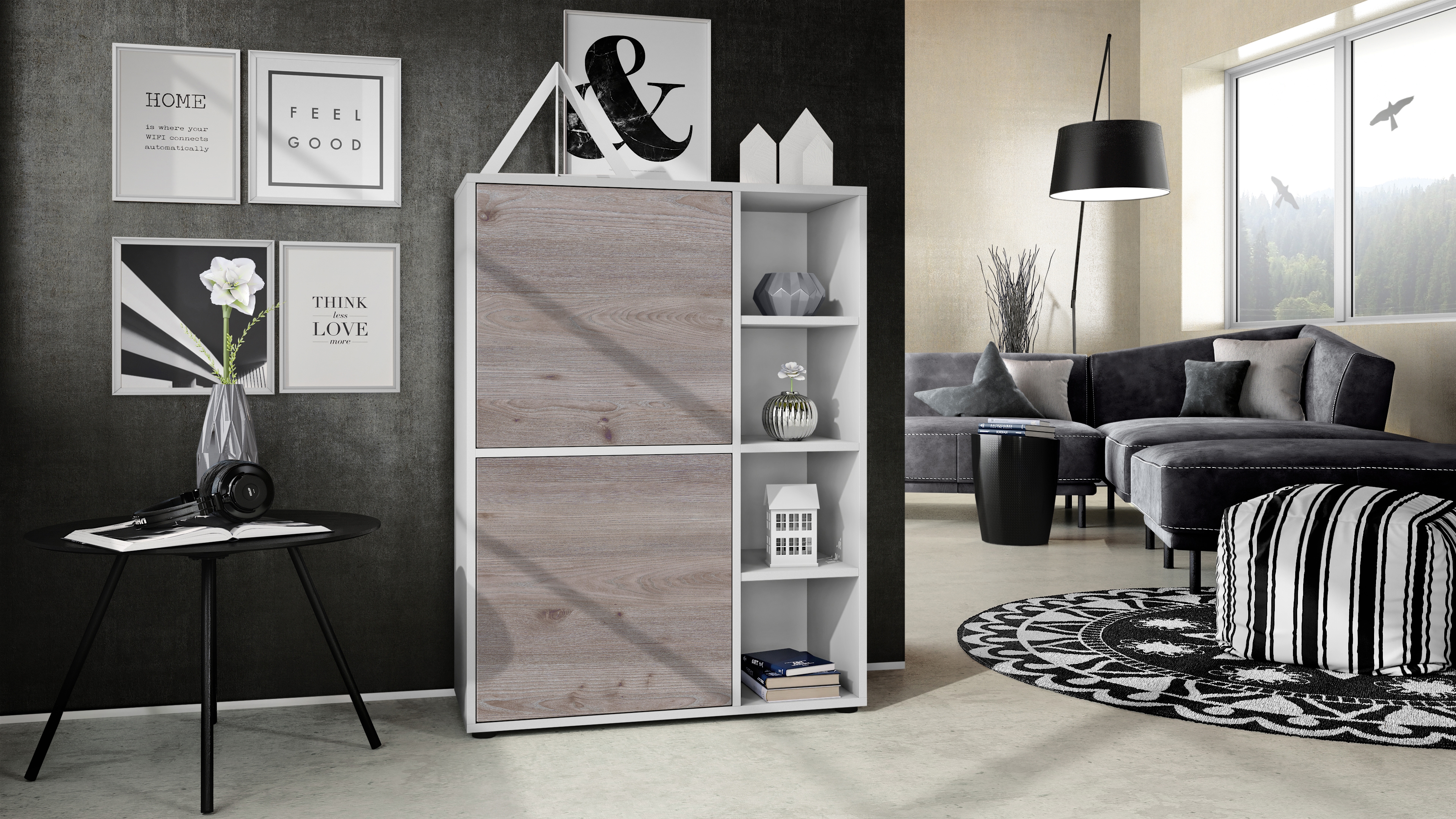 Durch das zeitlose, schlichte Design lässt sich das Möbelstück in den verschiedensten Räumlichkeiten ansehnlich platzieren. Ob Wohnzimmer, Arbeitszimmer oder Schlafzimmer, das Highboard wird der Blickfang des Raums sein.