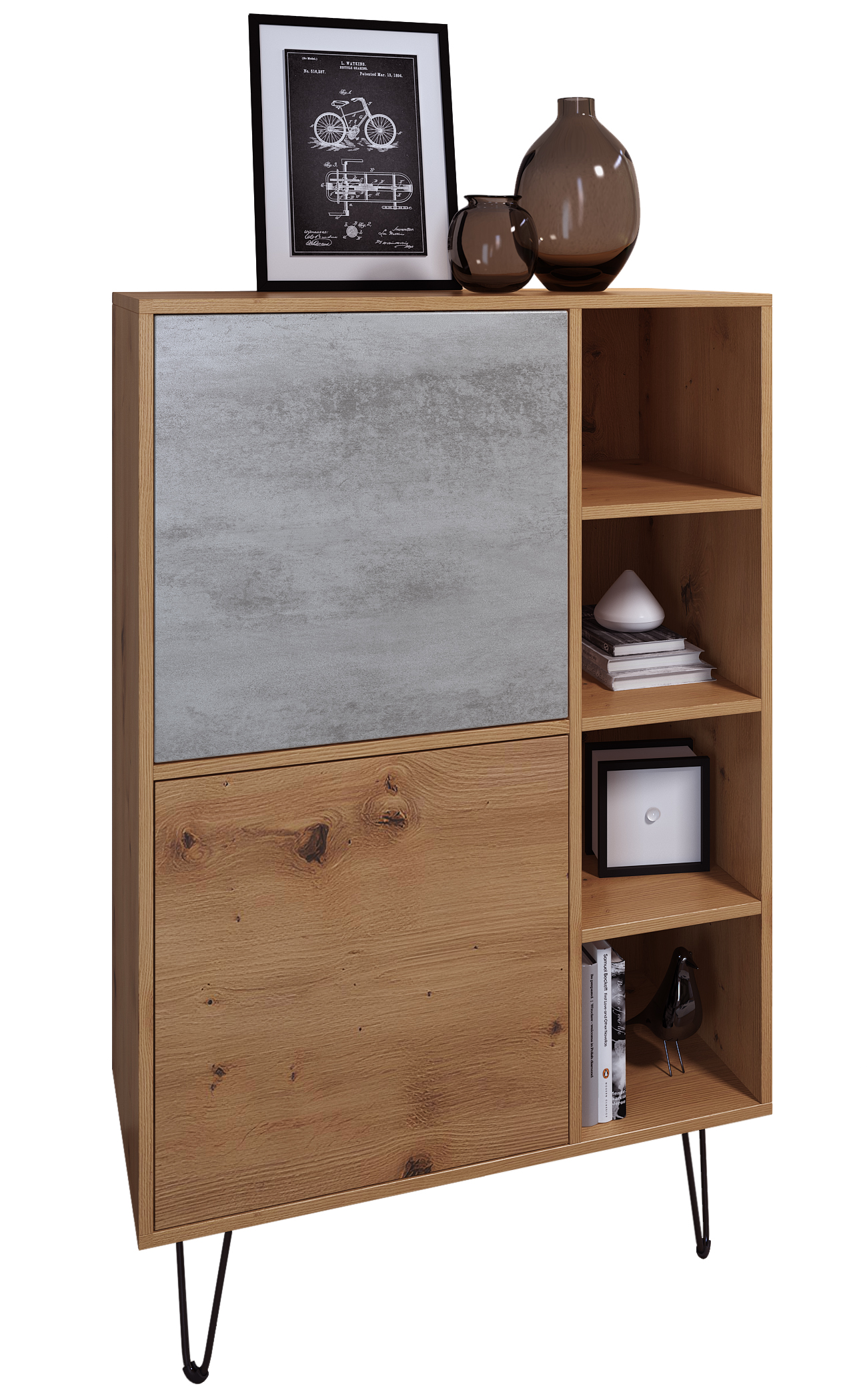 Produktinformationen "Highboard Havana V1 Kommode Made in Germany Eiche Evoke / Beton Oxid Optik (124 x 79 x 35 cm) "