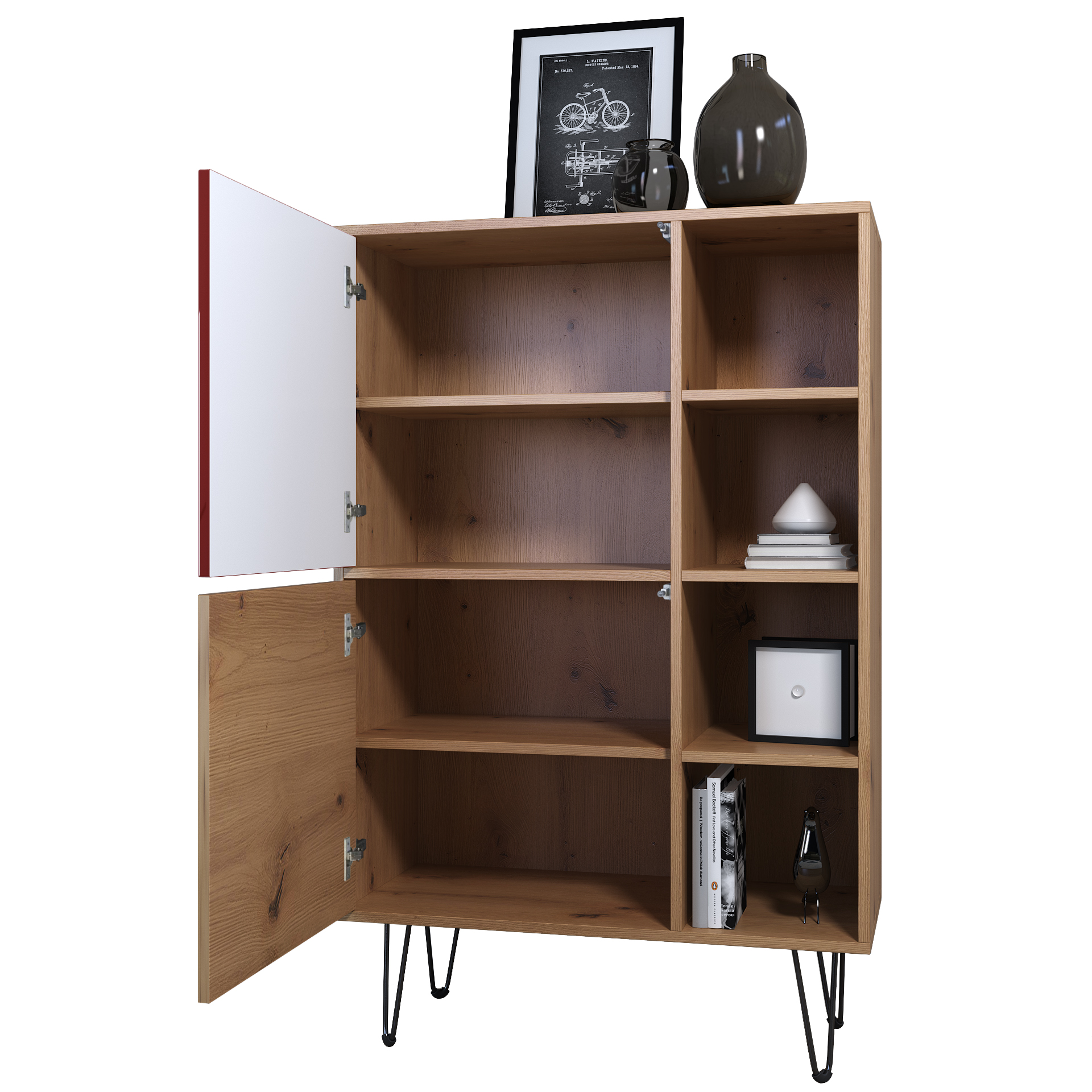 Die Türen mit Push-to-Open-Funktion verbergen großzügige Innenfächer – perfekt als Kommode, Schrank oder Aufbewahrungsschrank für Geschirr, Bücher oder Deko. Die 4 offenen Fächer bieten zusätzlichen Stauraum für Dekoration, Technik oder Pflanzen. Dank der grifflosen Front wirkt das Möbelstück besonders modern und harmonisch.