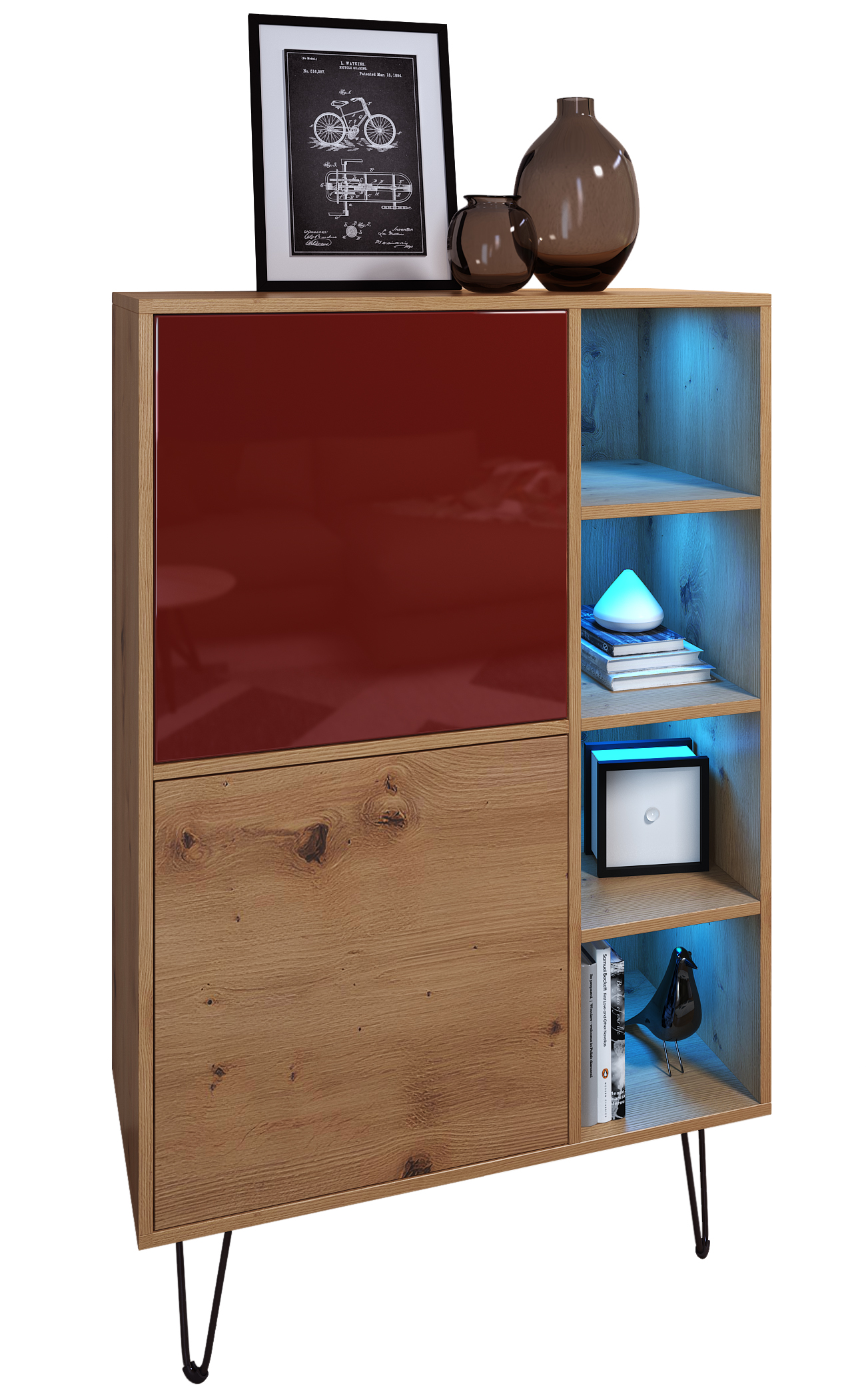 Produktinformationen "Highboard Havana V1 mit LED Kommode mit LED, Made in Germany Eiche Evoke / Bordeaux Hochglanz (124 x 79 x 35 cm) "