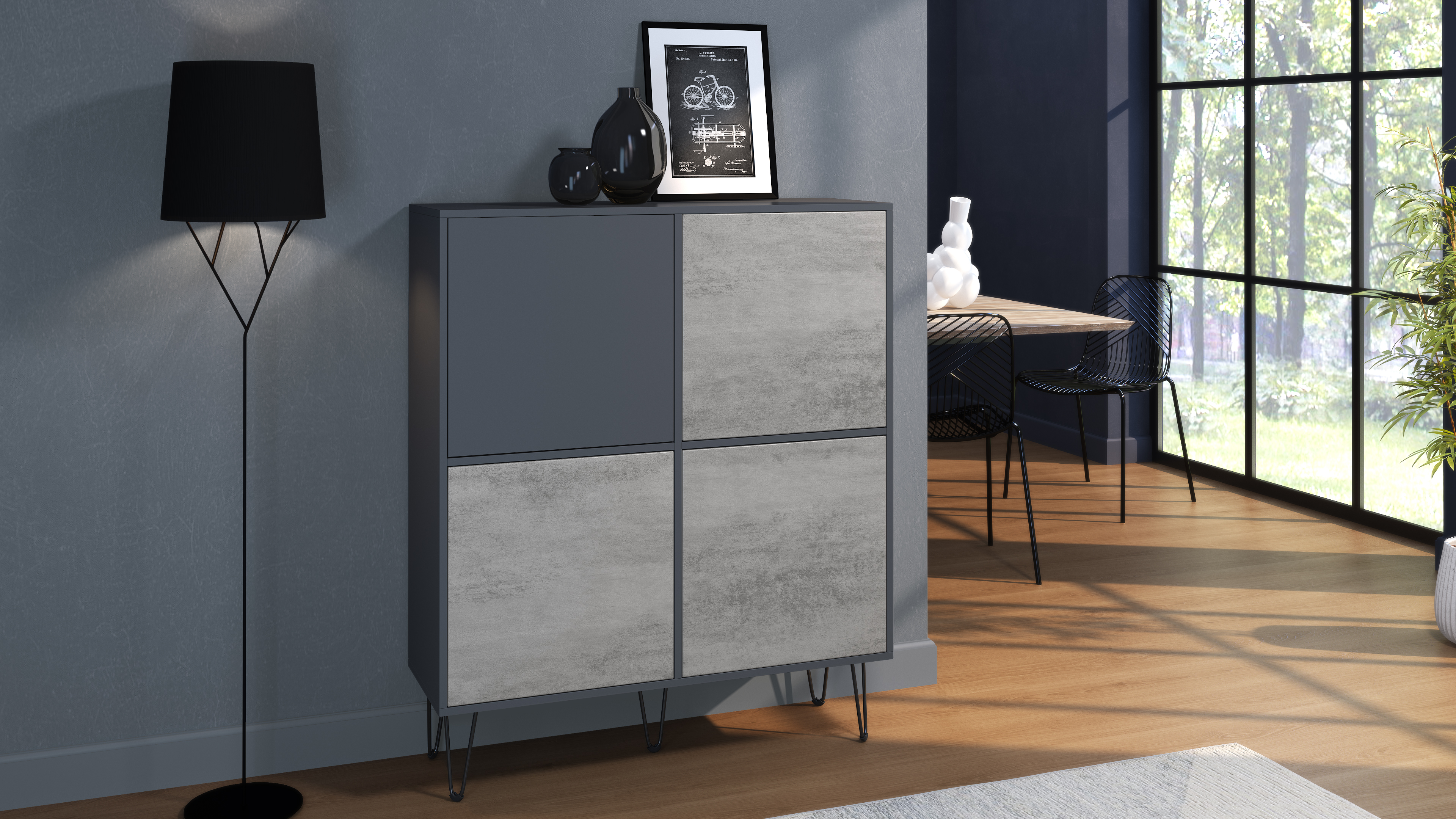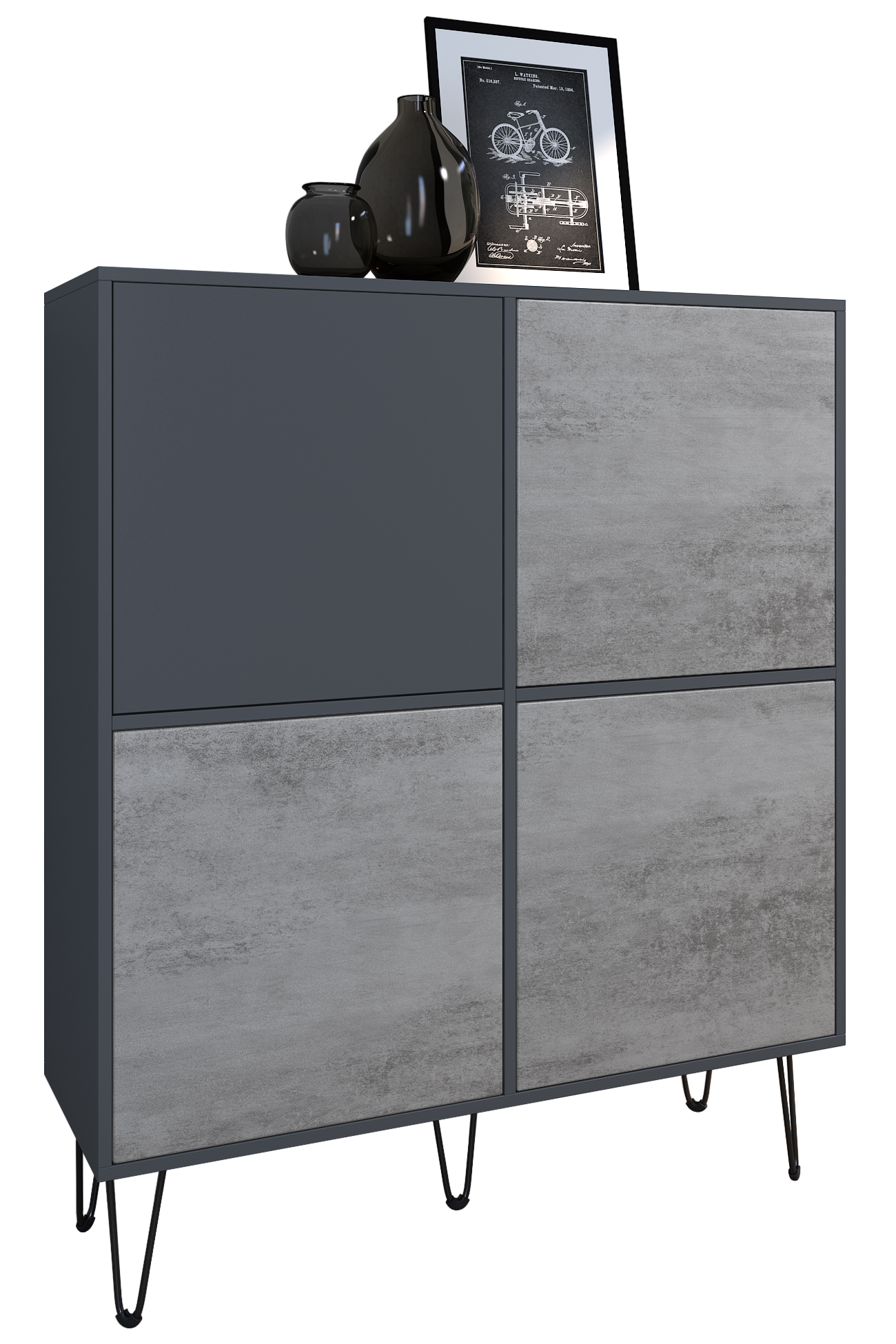 Produktinformationen "Highboard Havana V2 Kommode, Made in Germany Anthrazit matt / Beton Oxid Optik (104 x 124 x 35 cm) "