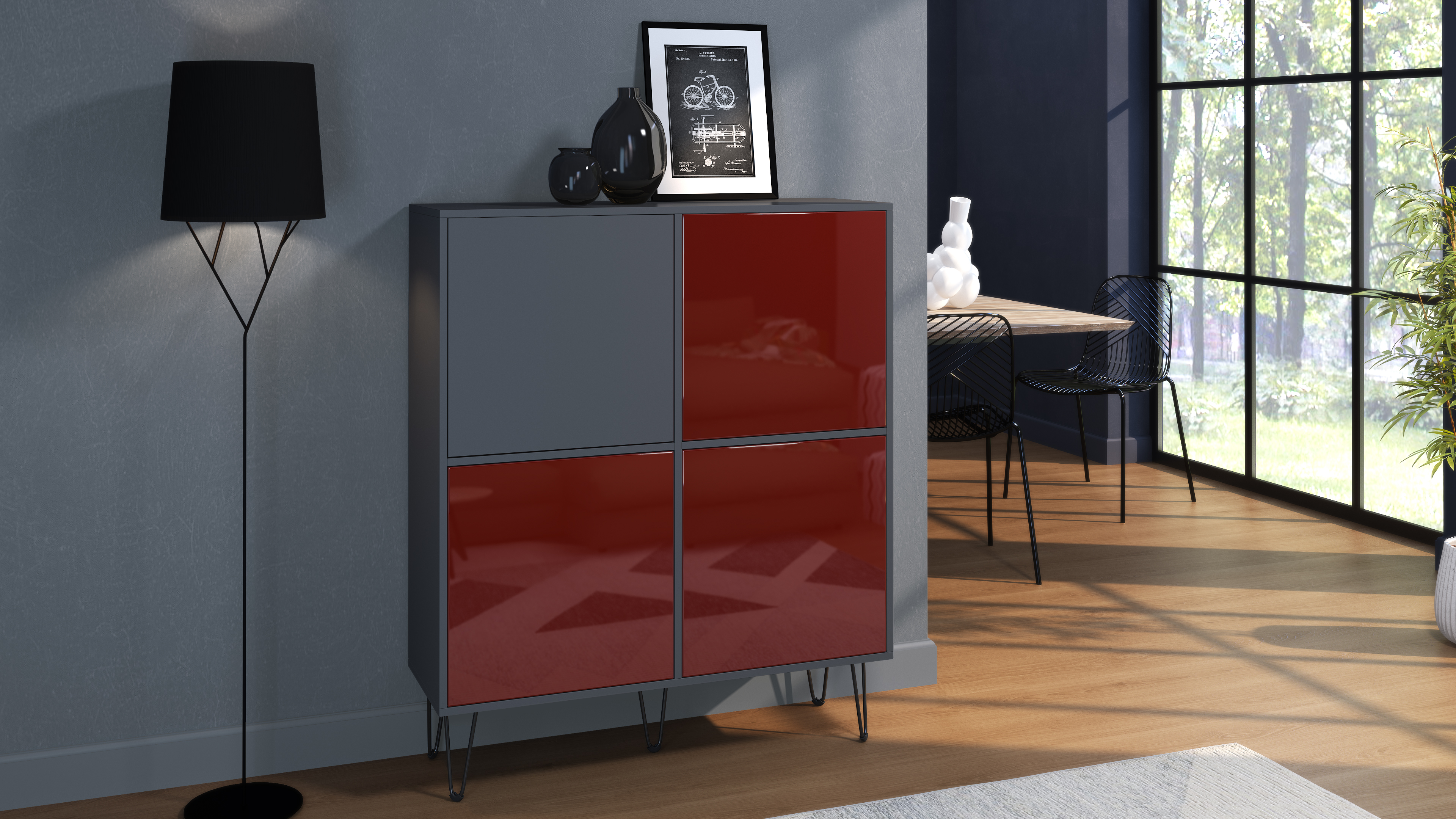 Produktinformationen "Highboard Havana V2 Kommode, Made in Germany Anthrazit matt / Bordeaux Hochglanz (104 x 124 x 35 cm) "