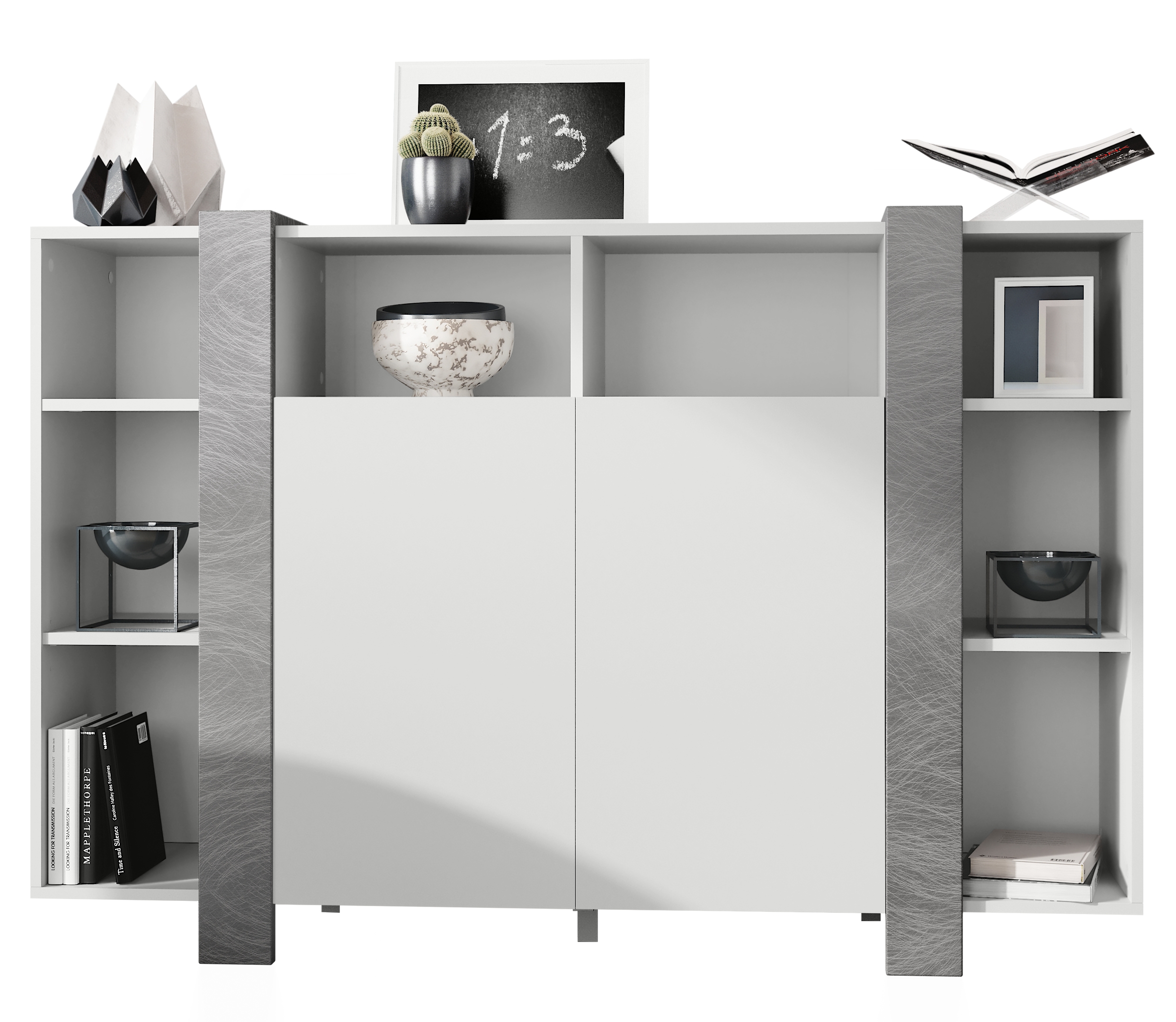 Produktinformationen "Highboard Ida V1 Weiß mit 2 Türen und 8 offene Fächer Weiß matt/Scratchy Metal (149 x 101 x 34 cm)"