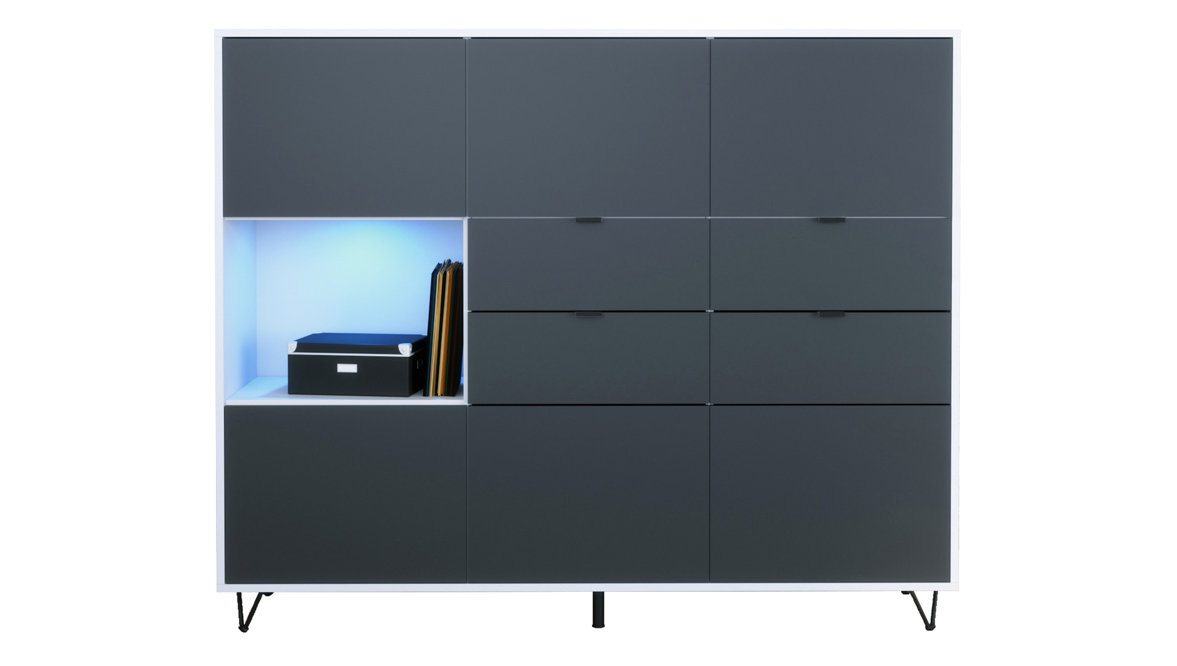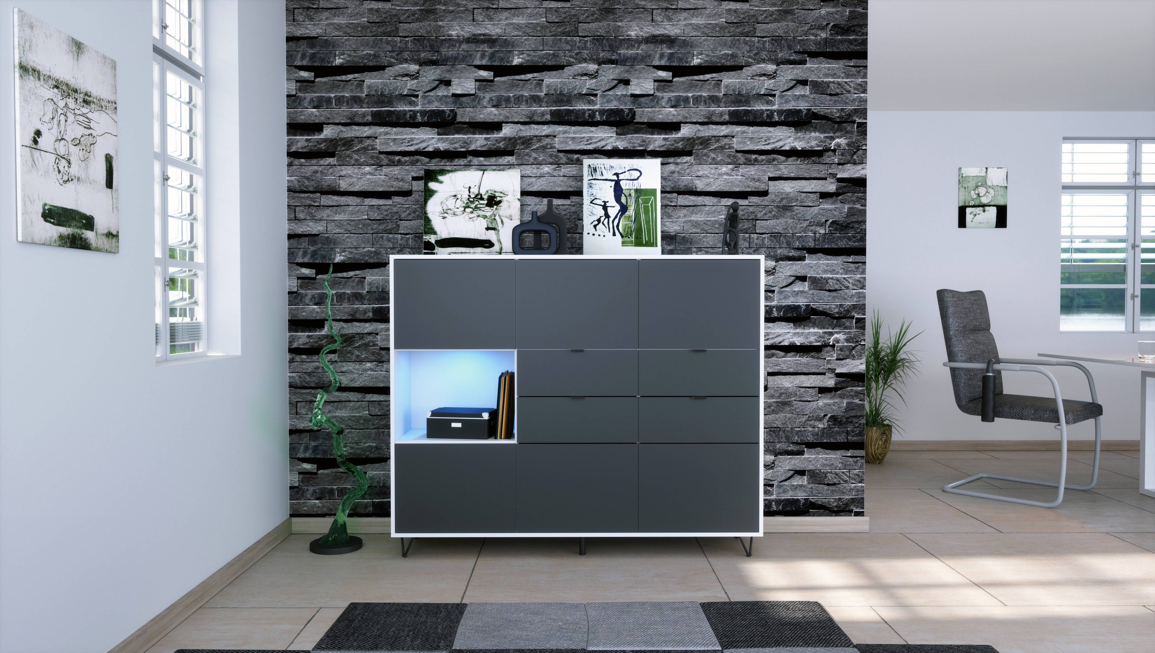 Produktinformationen "Highboard Marino V2 mit LED 4 Schubladen Anthrazit matt, inkl. LED, Made in Germany Korpus Weiß matt (152,5 x 125,5 x 37 cm) "