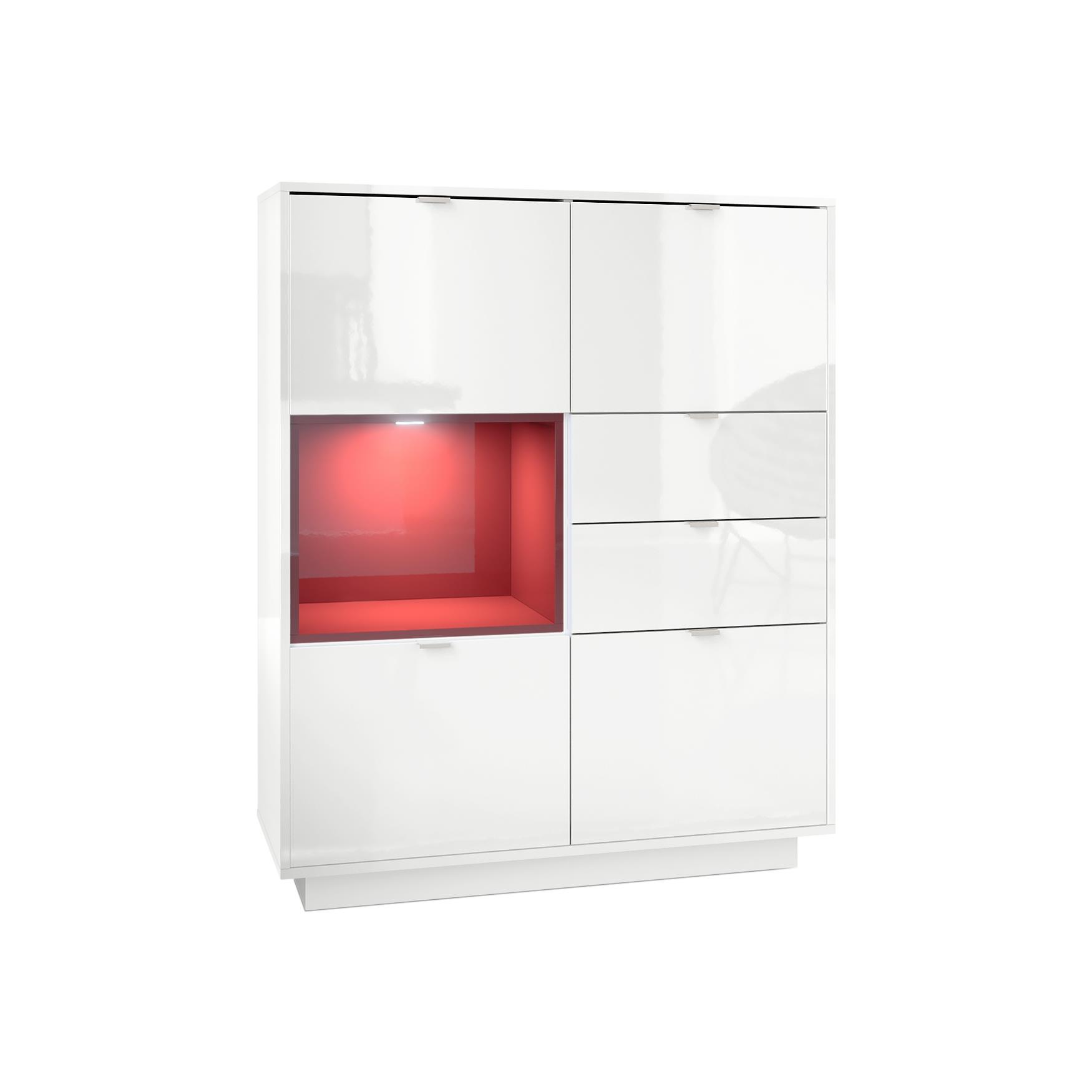Produktinformationen "Highboard Metro mit 4 Türen, 2 Schubladen und 1 offenem Fach Bordeaux Hochglanz (103 x 123 x 37,5 cm)"